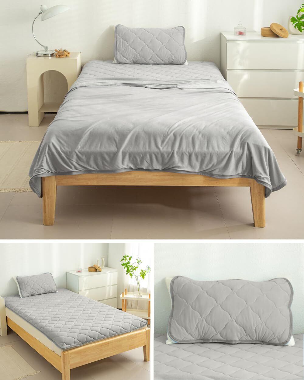 【涼しさと快適さを一式で】 同梱物:冷感タオルケット*1、冷感敷パッド*1、冷感枕パッド*1