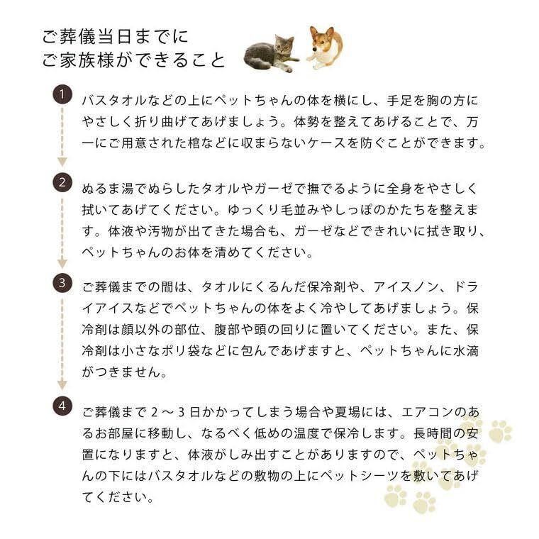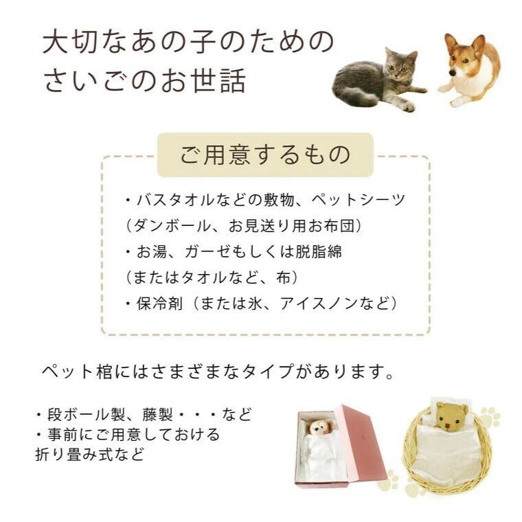 ダンボールやお棺の中に敷いていただいたり、そのままお部屋にお布団代わりに敷いてご葬儀までお傍にいてあげて、最期まで大切なあの子をどうぞ優しくお見送りください。