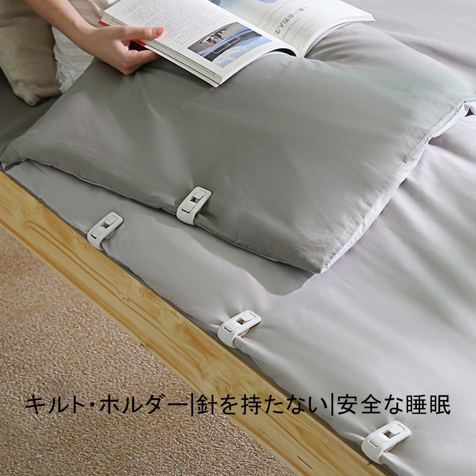 【布団のすべり止め】布団のズレを防ぎます。この布団クリップがあれば、もう布団の置き忘れやズレを心配する必要はありません。安定した滑り止め付きで、簡単にパチンとはめることができ、跡も残らず簡単に取り付け・取り外しができます。布団をしっかり固定したら、一晩中暖かく快適な睡眠を楽しめます。