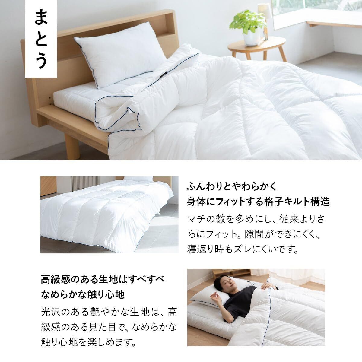 <フィットする掛け布団>マチの数を多めにし、従来よりさらにフィットします。隙間ができにくく、寝返り時もズレにくい。光沢感のある艶やかな生地は、なめらかな触り心地です。洗濯機で丸洗い可能。洗った後も縮みにくく、ヨレにくい中わたを使用しています。