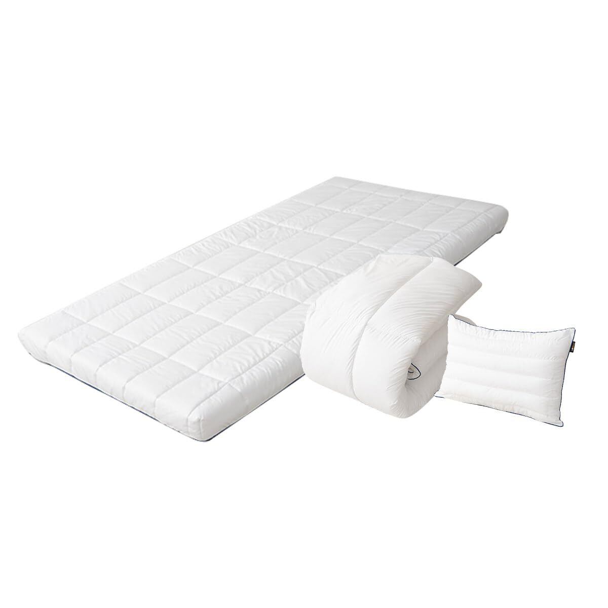 【敷き布団】■サイズ 約97×195×9cm ■組成 表生地(上):ポリエステル100%/表生地(中):ポリエステル100%/表生地(裏):ポリエステル100%(タフタ)/中材:高反発ウレタンフォーム 30D・180N/インナーカバー:ポリエステル100%(天竺ニット)/裏生地:ポリエステル100%(メッシュ) ■商品重量 約5.0kg ■仕様 L字ファスナー開閉式、パイピング付き ■お手入れ方法 側生地:取り外して、洗濯機洗い可能 ※洗濯ネット使用推奨 ■製造国 中国