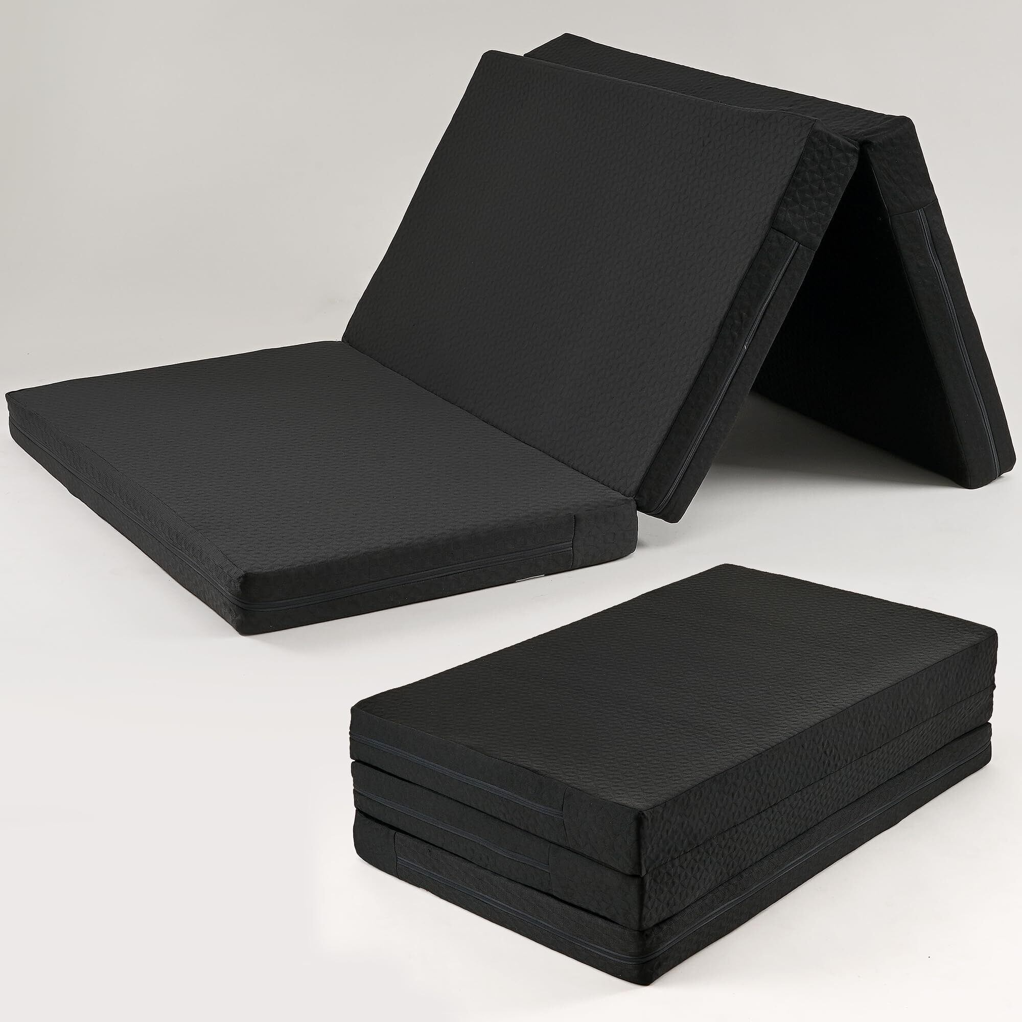 VECELO マットレス 折り畳み 厚さ10cm セミダブル 高反発マットレス 床垫 敷布団 3つ折り ベッド 寝具 洗えるカバー 低反発マット シングル 120*195cm ベットマット ブラック