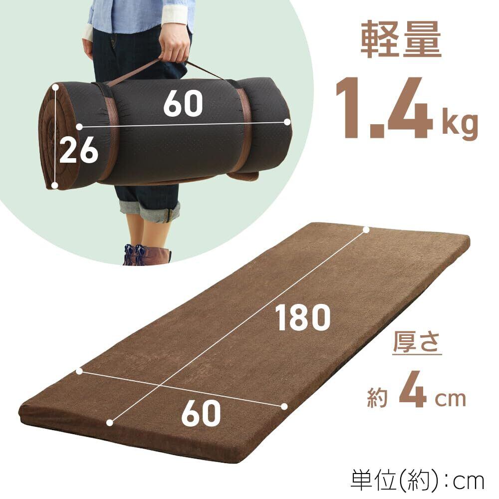 アイリスプラザ 車中泊 防災グッズ マットレス コンパクト レジャー 災害グッズ 丸めて 寝袋 高反発 × 低反発 厚4cm 長180cm ブラウン