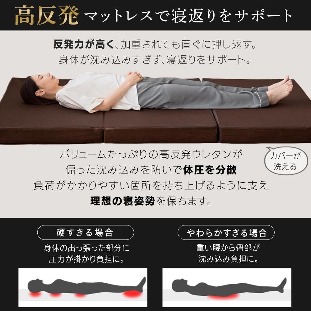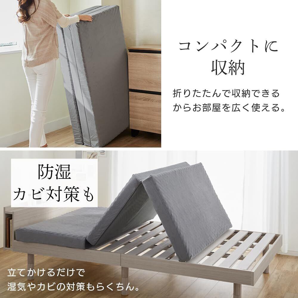 アイリスプラザ マットレス シングル 厚さ10cm 高反発三つ折りウレタンマットレス 通気性と体圧分散性の良いマットレス ネイビー AHPM3-25D-S