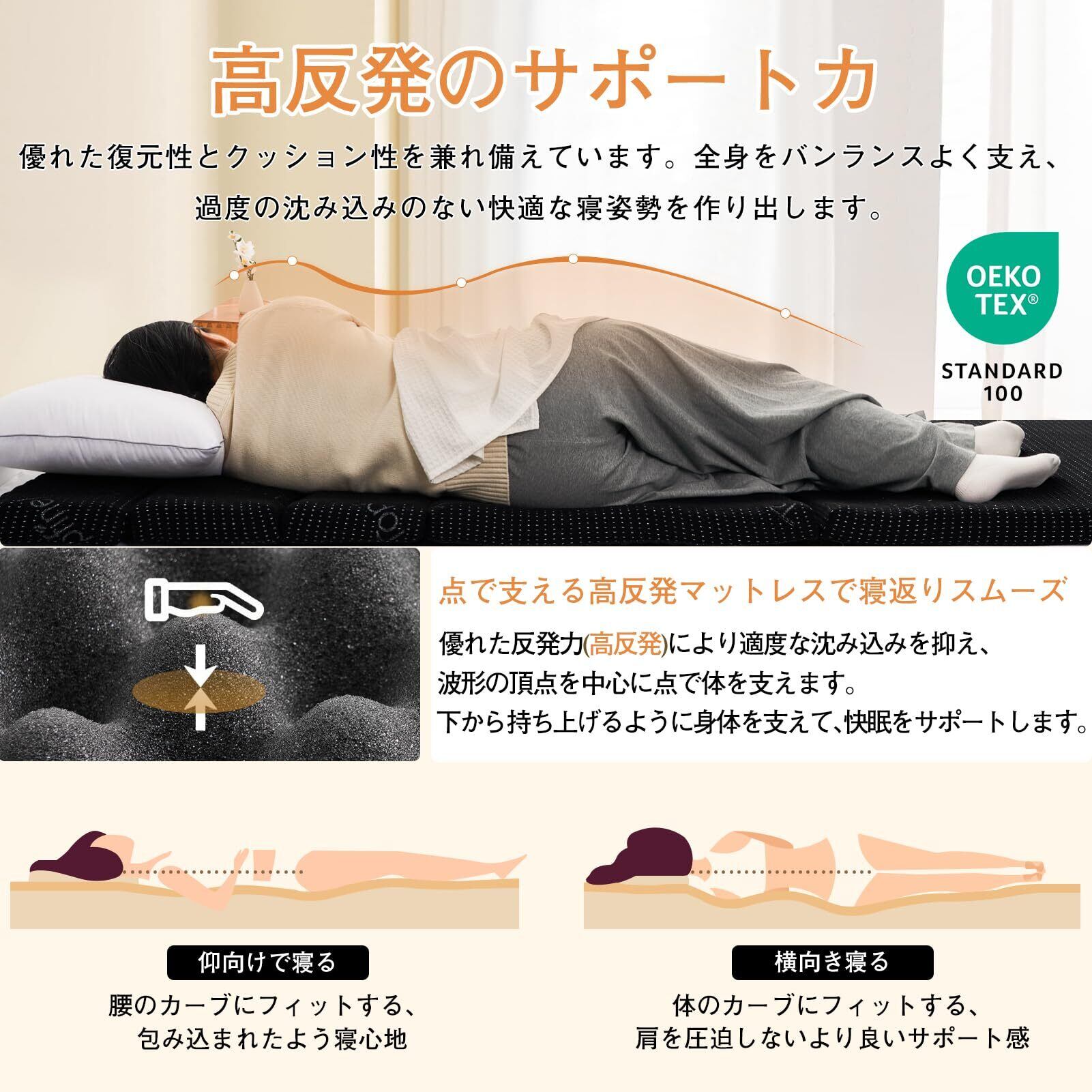 【こだわりの寝心地】体を支えるプロファイル加工を施した高反発ウレタンを採用し、適度な反発力により体圧を均等に分散します。厚さ5cmの設計は底つき感を軽減し、快適な寝姿勢を実現いたします。また、カバー底面には滑り止め加工を施し、マットのズレを防止しております。28D高密度ウレタンを採用、へたりにくく長く使える高い耐久性を叶えます。