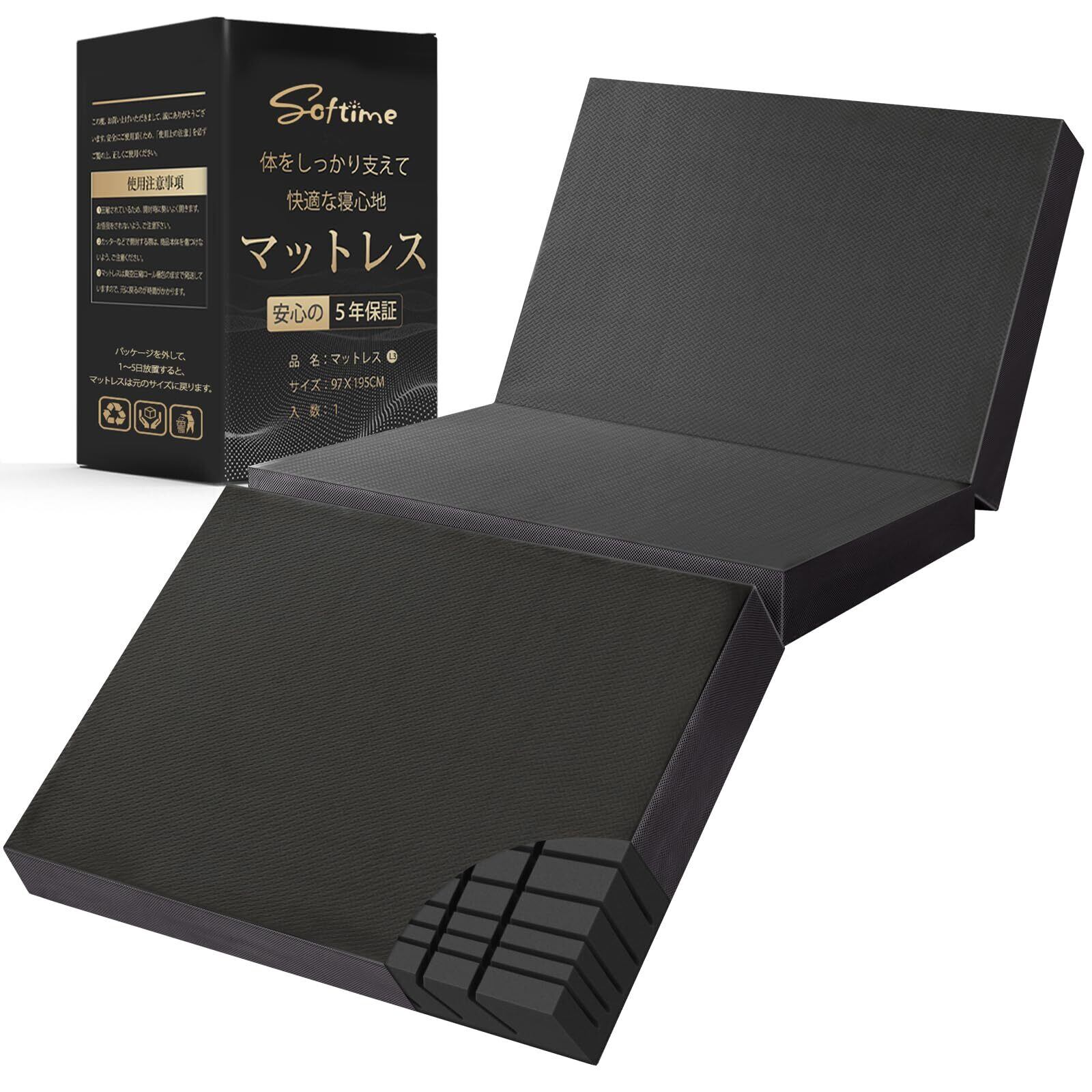 Softime マットレス シングル 3つ折り 【硬め250N/200N 高密度34D 超硬質】 【腰部徹底サポート】 【CNC新技術 2層構造 厚さ10cm】 折り畳み 高反発マットレス 体圧分散 身体の負担軽減 寝返りサポート 折りたたみ 硬め 敷き布団 体圧分散 洗えるカバー 5年 圧縮梱包 ブラック L3 B511-97195BK-A
