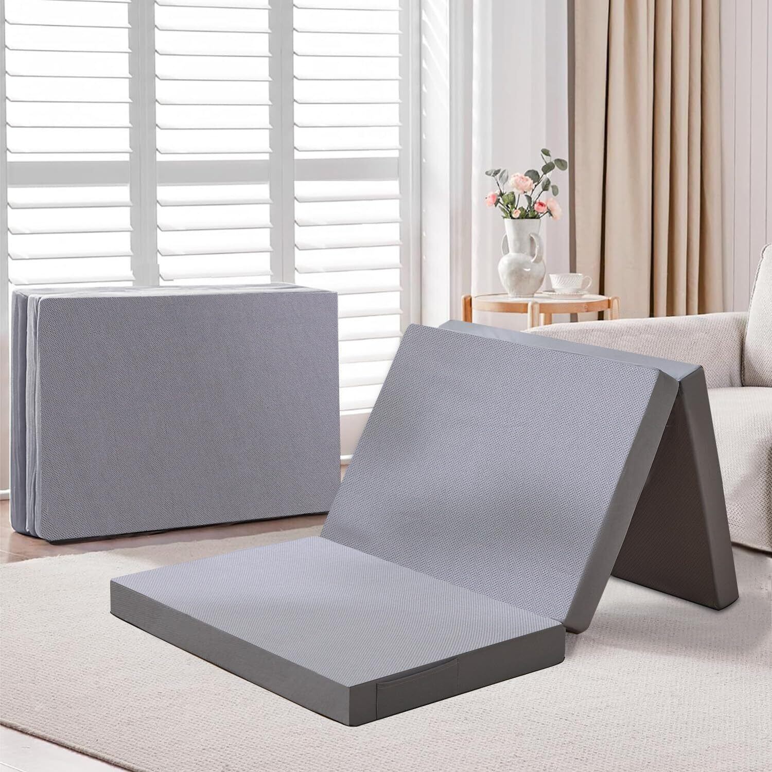 楽暮屋 折りたたみマットレス シングル 三つ折り 高反発 体圧分散で腰サポート 極厚10cm 滑り止め加工 抗菌防臭&洗えるカバー 通気性 オールシーズン対応 軽量・コンパクト収納 5年付き 97x195x10cm グレー