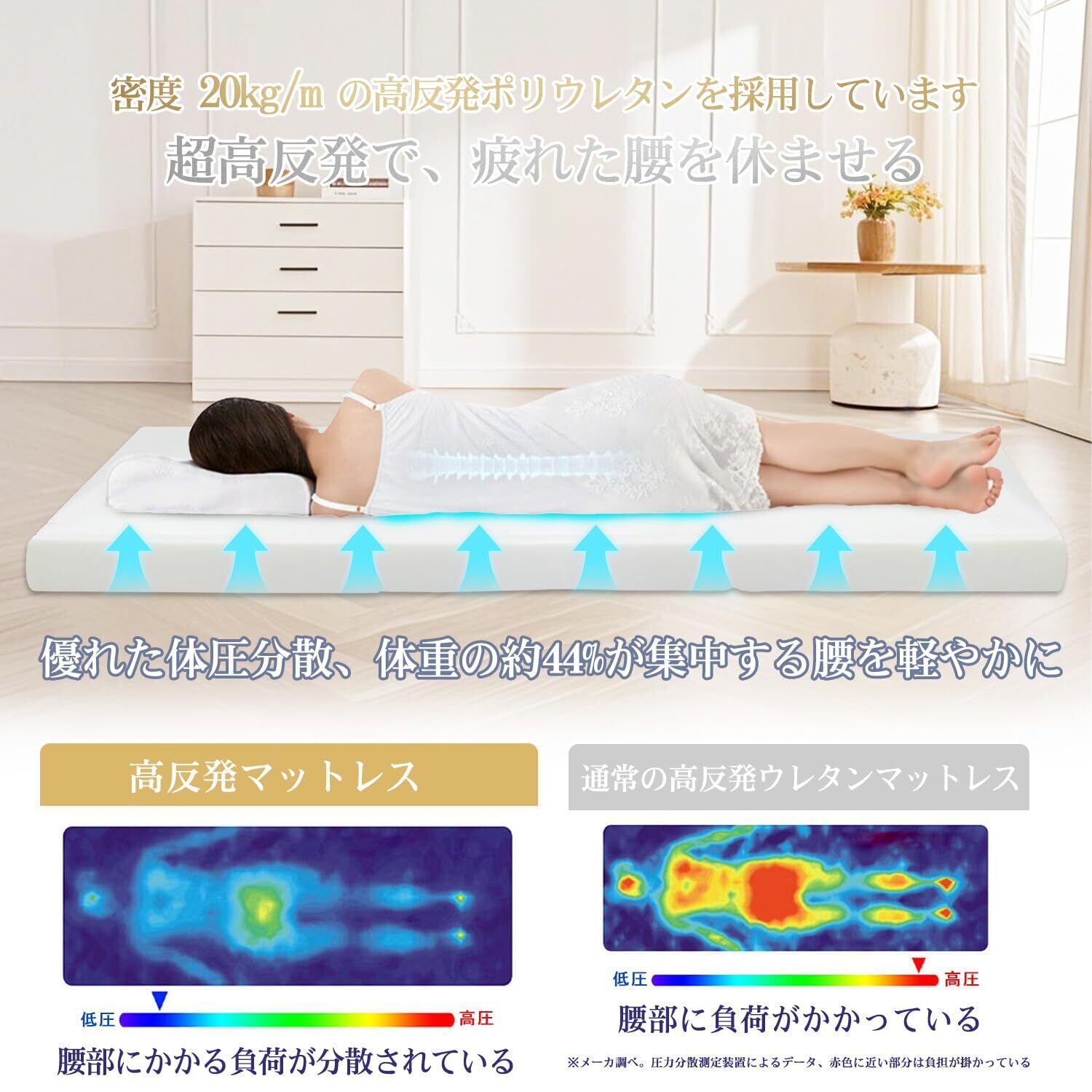 【高反発ポリウレタンで理想的な寝姿勢をサポート】楽暮屋折りたたみマットレスは、密度20kg/m³の高反発ポリウレタンを採用しています。高温発泡製法を採用した折りたたみマットレスは、耐久性と適度な硬さを兼ね備え、肩や腰の沈み込みを効果的に軽減します。体圧を均等に分散し、背骨の自然なS字カーブを維持するよう設計されているため、朝の腰痛や肩こりを効果的に予防します。10万回の加圧テストに合格した素材で、長期間使用してもへたりにくいのが特徴です
