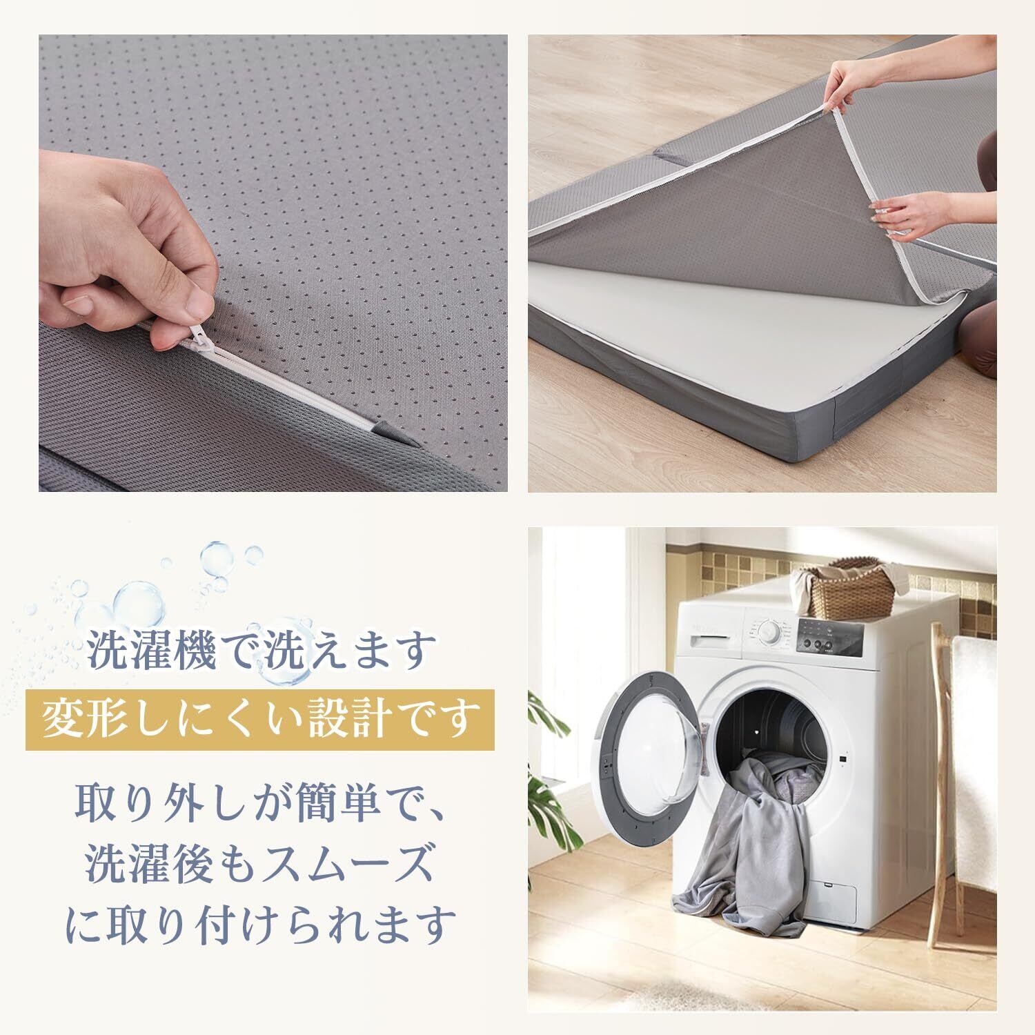 【三つ折りできるから便利】三つ折りデザインで簡単収納と持ち運び このマットレスは、使わない時には簡単に三つ折りにしてコンパクトに収納できます。旅行やお客様用に便利で、収納スペースを節約できます。さらに、軽量設計なので、持ち運びも簡単です。広げるだけで即使用可能で、寝心地を損なうことなく快適に眠れます。また、取り外し可能なカバーは水洗い可能で、常に清潔な状態を保つことができます