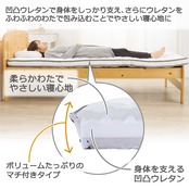 ◆中芯にはプロファイルウレタンを使用し、身体をしっかり支えます。ウレタンの上下にはふんわり柔らかなわたを使用し、やさしい寝心地です