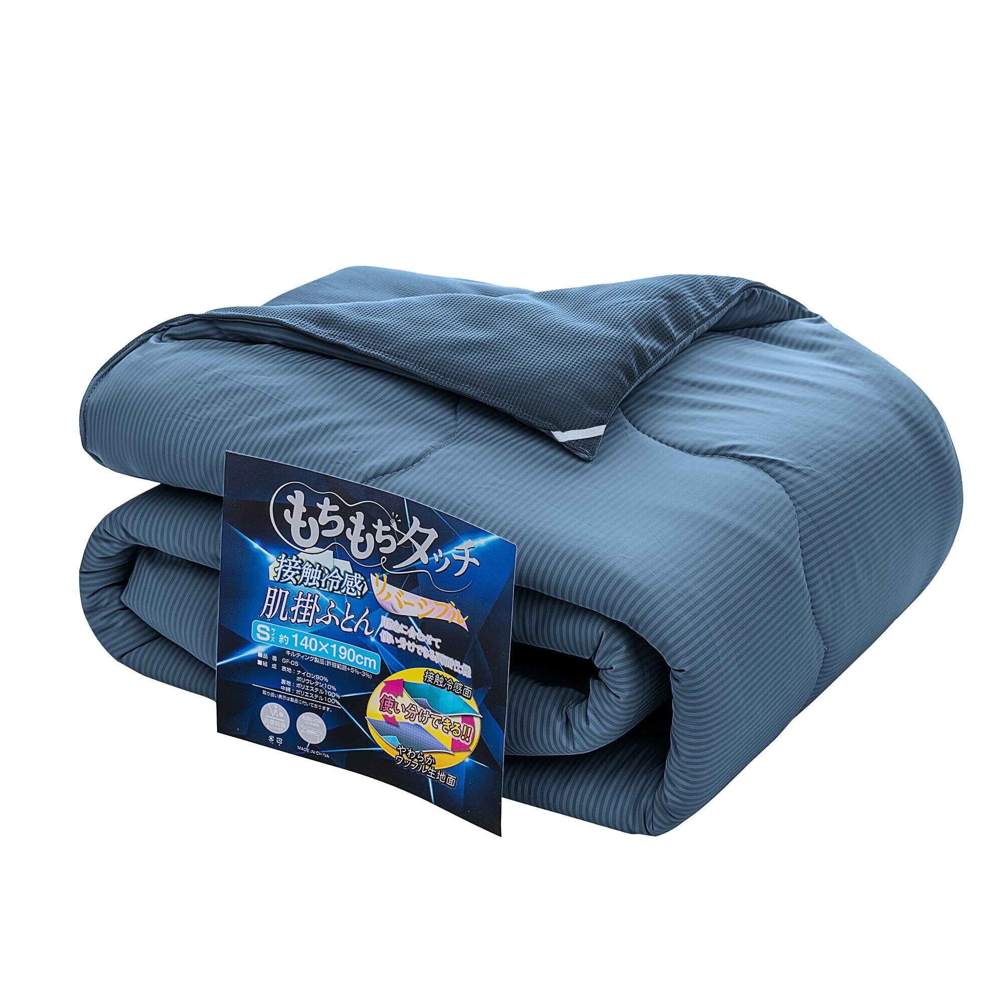 【商品仕様】表地:ナイロン90%ポリウレタン10% 詰め物:ポリエステル100%(中綿) 裏地:ポリエステル100%◆ご注文前にご確認ください:本品は「肌掛け布団」「シングル」「ネイビー」です。【サイズ】140x190cm。一枚。【円筒状圧縮簡易梱包でお届けいたします。】商品は衛生的に圧縮梱包されております。商品を開封後シワが目立つ場合がございますが、ご使用頂いているうちになくなりますのでご安心ください。