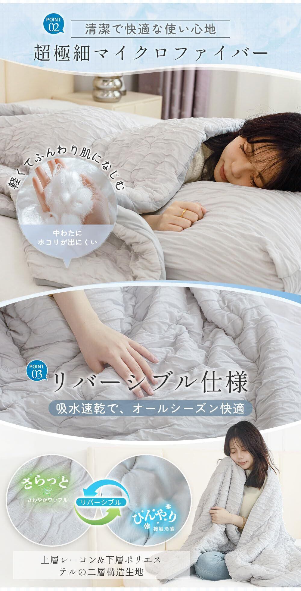 特徴 リバーシブル, 丸洗い可能, 抗菌防臭, 接触冷感, 除湿速乾