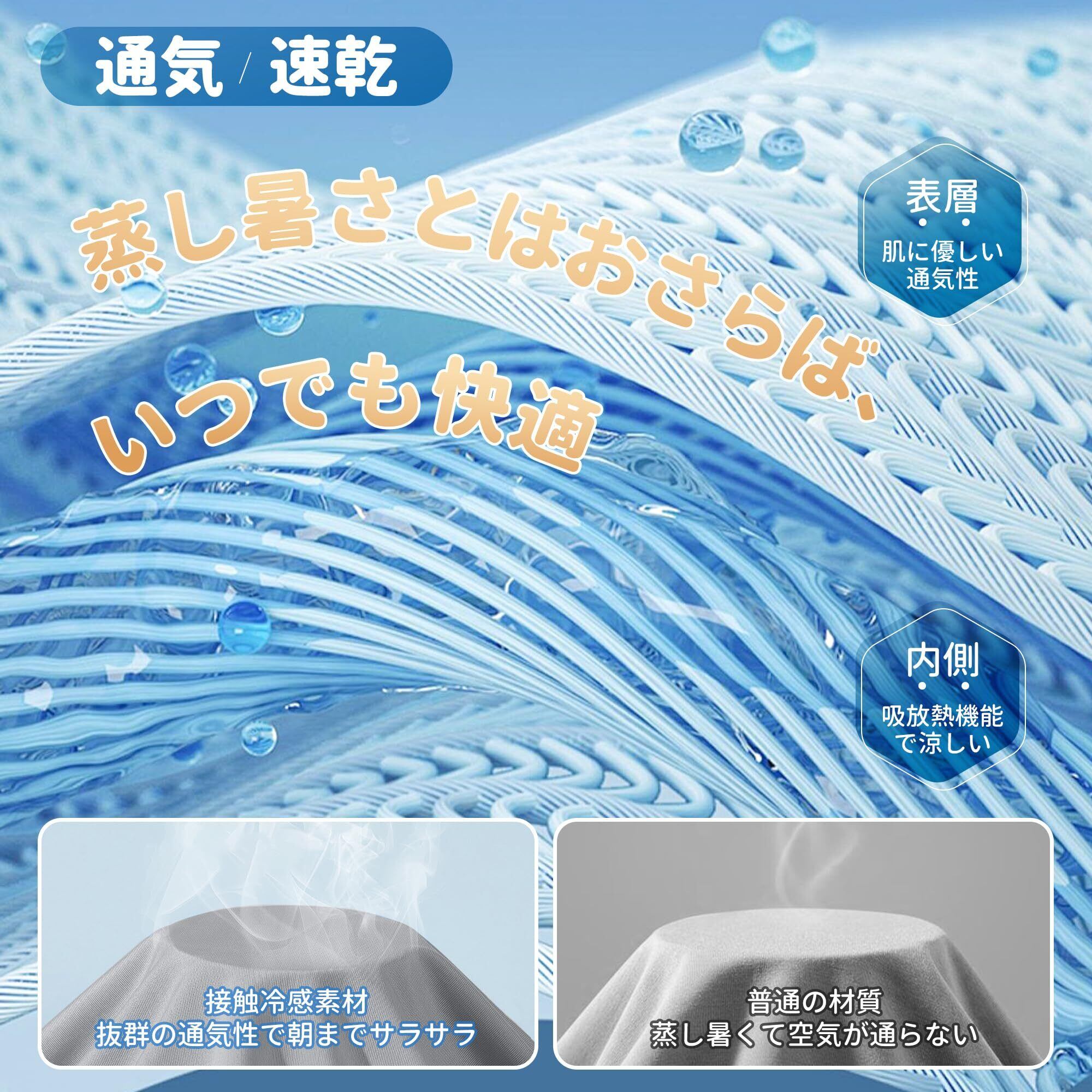 【まるで呼吸する繊維、朝までサラサラ快適】優れた吸湿性と通気性を持つこの冷感掛け布団は、寝ている間の汗や湿気を素早く吸収・放出し、外へ逃がします。ムレにくい構造だから、掛け布団の中は一晩中サラサラ。