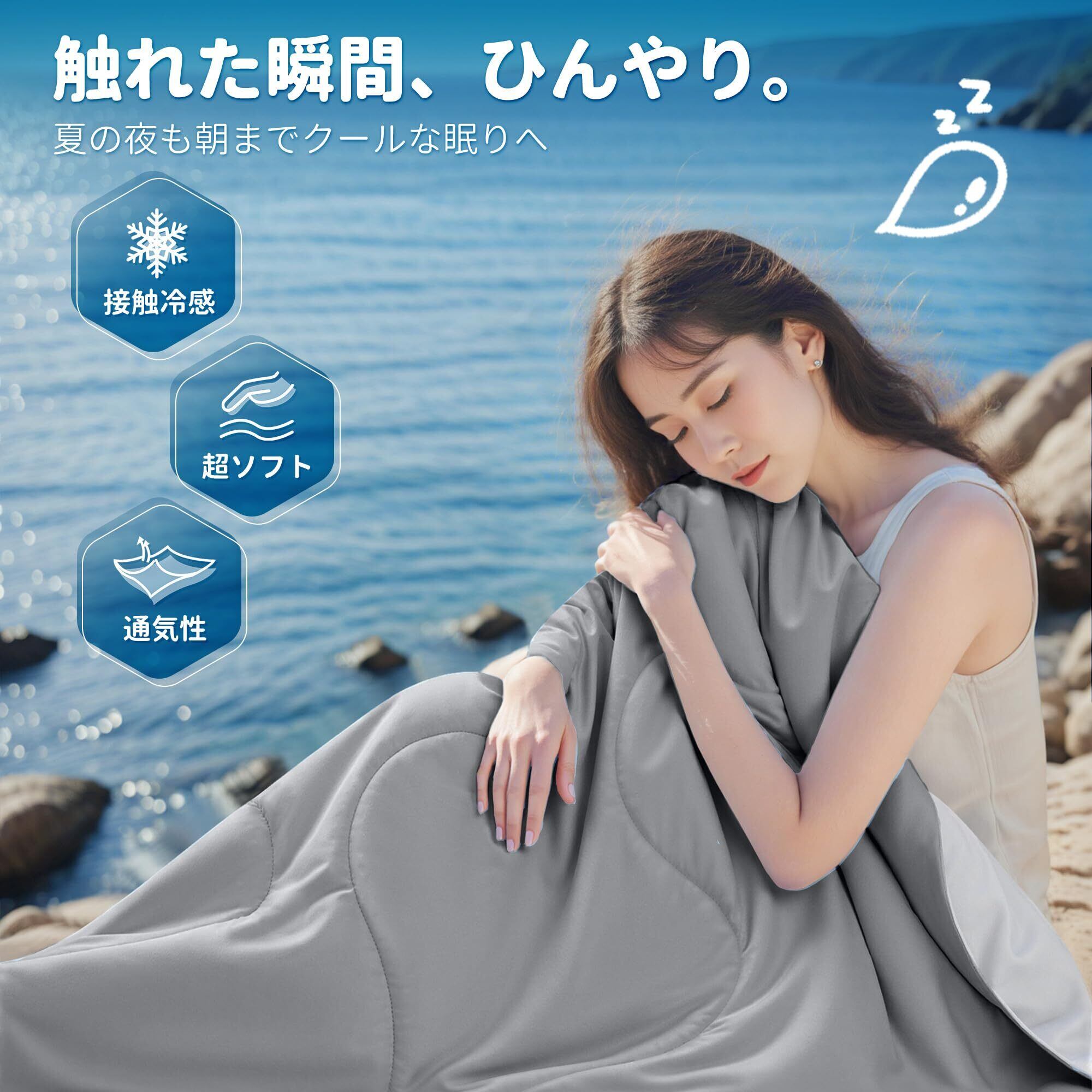【触れた瞬間ひんやり!リバーシブルで賢く快適】表地には接触冷感素材を使用しており、触れた瞬間に心地よいひんやり感が広がります。寝苦しい夏の夜を和らげる、まさに理想の夏用掛け布団です。 裏地には吸湿性抜群の綿パイル生地を採用し、サラッとした肌触り。気温や気分に合わせて使い分けできる、便利なリバーシブル仕様の掛け布団なので、一年を通して快適にお使いいただけます。