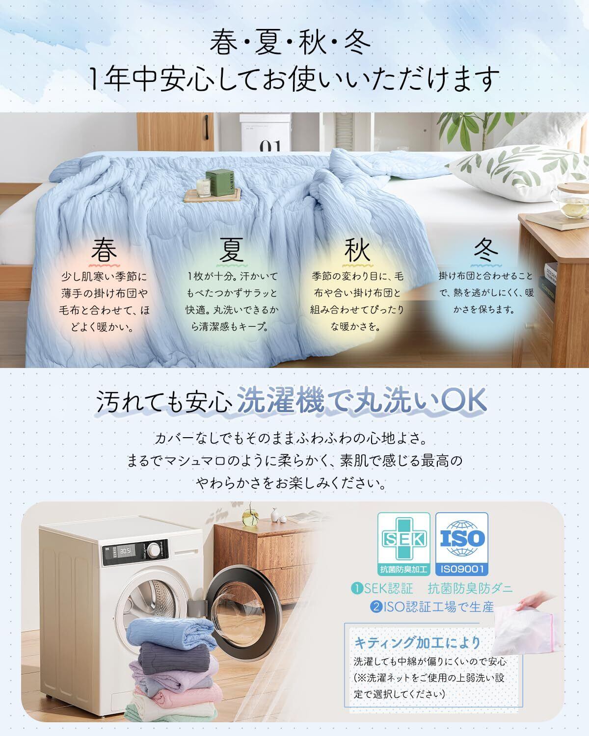 Matdeco 掛け布団 肌掛け布団 シングル【天然素材・高級テンセル繊維】マシュマロケット 肌に優しい ふわとろ もちもち 夏用 ひんやり 通気速乾 軽量 洗える SEK抗菌防臭 防ダニ 春夏秋兼用 肌布団 冷房対策 キルトケット 140×190cm ブルー