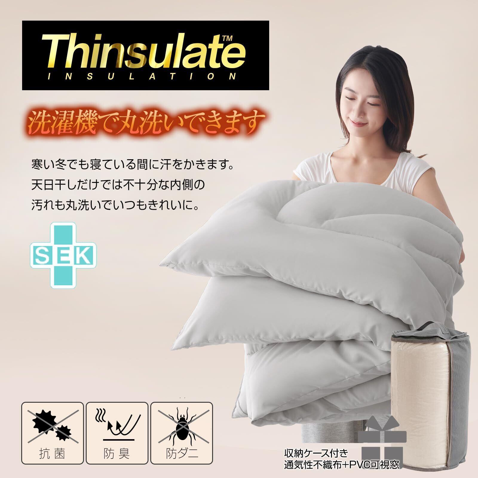 【在庫限り】シンサレート 掛け布団 掛けふとん シングル ふとん 羽毛より暖かい 増量タイプ あったか 洗える かけふとん 軽量 通気 かけ布団 ほこりが出にくい 防ダニ 抗菌防臭 アレルギー対策 身体にやさしくフィット 150x210cm グレー