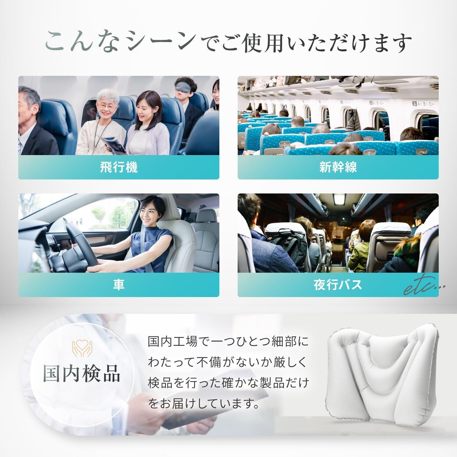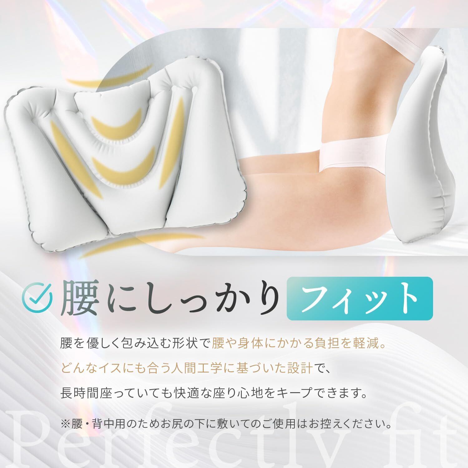 【【選ばれる理由】口を付けずに膨らむから衛生的。口紅を塗られる女性の方に特におすすめです!エアー式で軽量コンパクトに収納できます。旅行バッグやビジネスバッグの中に入れても邪魔になりません。人間工学に基づいた腰をしっかり包み込んでくれる形状が特徴です。