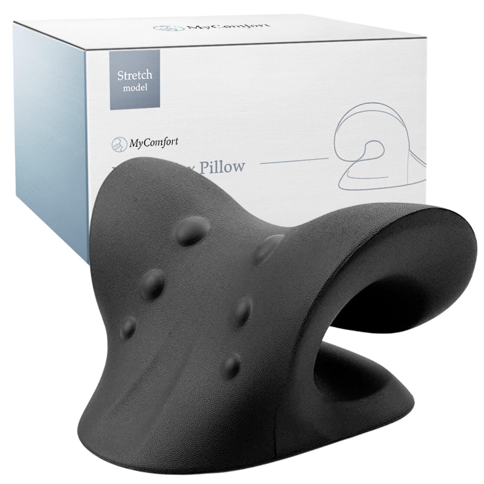 [めざましTVで紹介] MyComfort 首 ストレッチ 首枕 [自宅でたった5分] 首 肩 肩甲骨 を伸ばす 枕 首用 肩用 健康器具 首まくら ネックリラックスピロー ギフト プレゼント 誕生日 に (ブラック, ストレッチモデル)