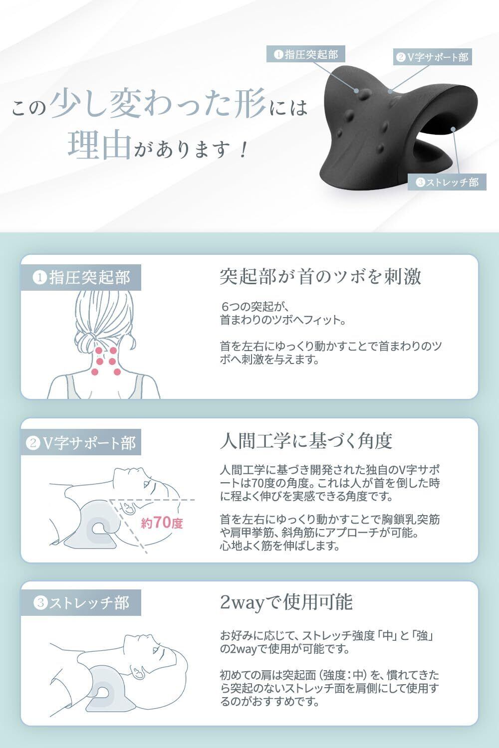【Vサポート設計】人間本来の首アーチに基づくV字型設計なので、左右に首がズレることなく適度に首を伸ばすことができます。スキマ時間の首まくらとしてご使用頂けます。誕生日や記念日のプレゼント・ギフト にも。