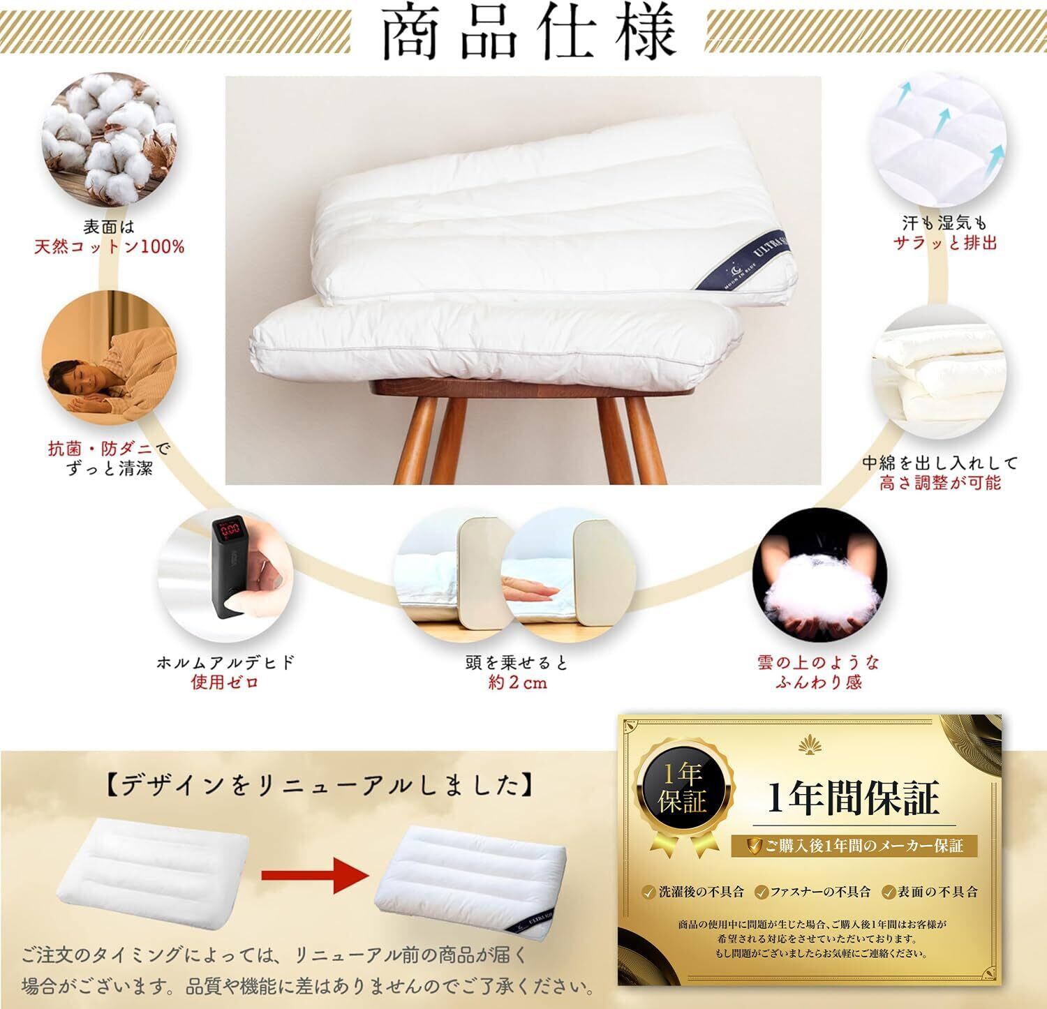 高さ調整OK / 洗濯機で丸洗いOK / 雑菌の繁殖を抑えダニを防ぐので清潔 / ホルムアルデヒド0%(※枕の洗濯タグには洗濯できないと記載がありますが、第三者試験において洗濯できることを確認済みです。乾燥機の使用はお控えください)