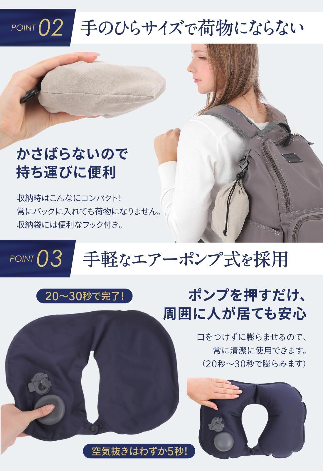 【限定セール】ネックピロー コンパクト【整体師×睡眠改善インストラクター監修】ポンプ式 軽量 エアー 飛行機 車 新幹線 首枕【MONOQLO ベストバイ受賞店】 neck pillow トラベルピロー 長距離 旅行 低反発 携帯枕 クッション 便利グッズ 快適グッズ (ネイビー)