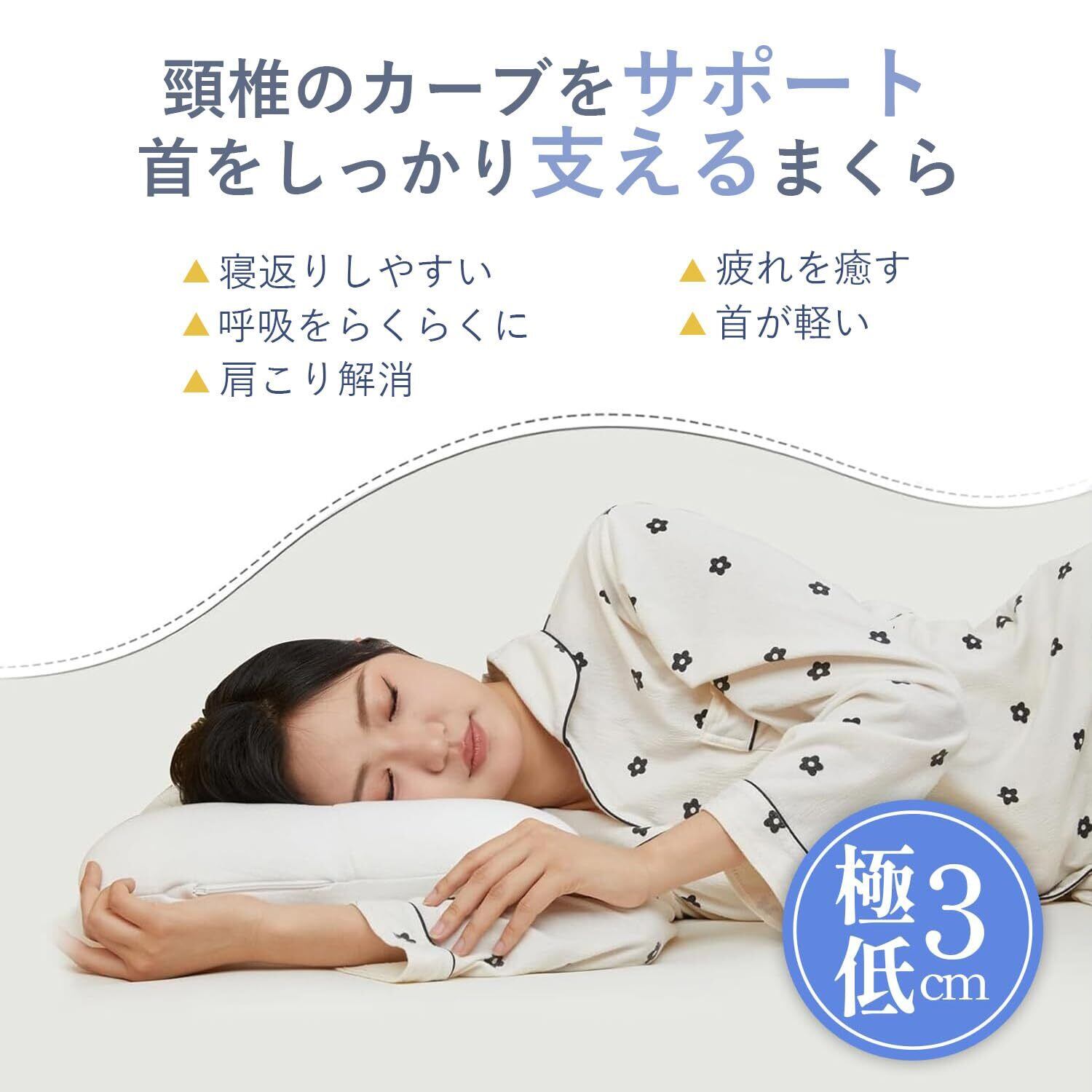 CozySleep 枕 低反発 まくら 低め 3cm 低い枕 柔らかい 首が痛くならない 【気道確保で いびき防止】 高さ調整可能 安眠枕 快眠枕 子ども枕 学生枕 来客用 寝返り 横向き寝 仰向け寝 うつ伏せ寝 体圧分散 首や肩の負担を減らす 洗える 通気性 立体分区構造 43x63cm (高さ調整 低め3cm)