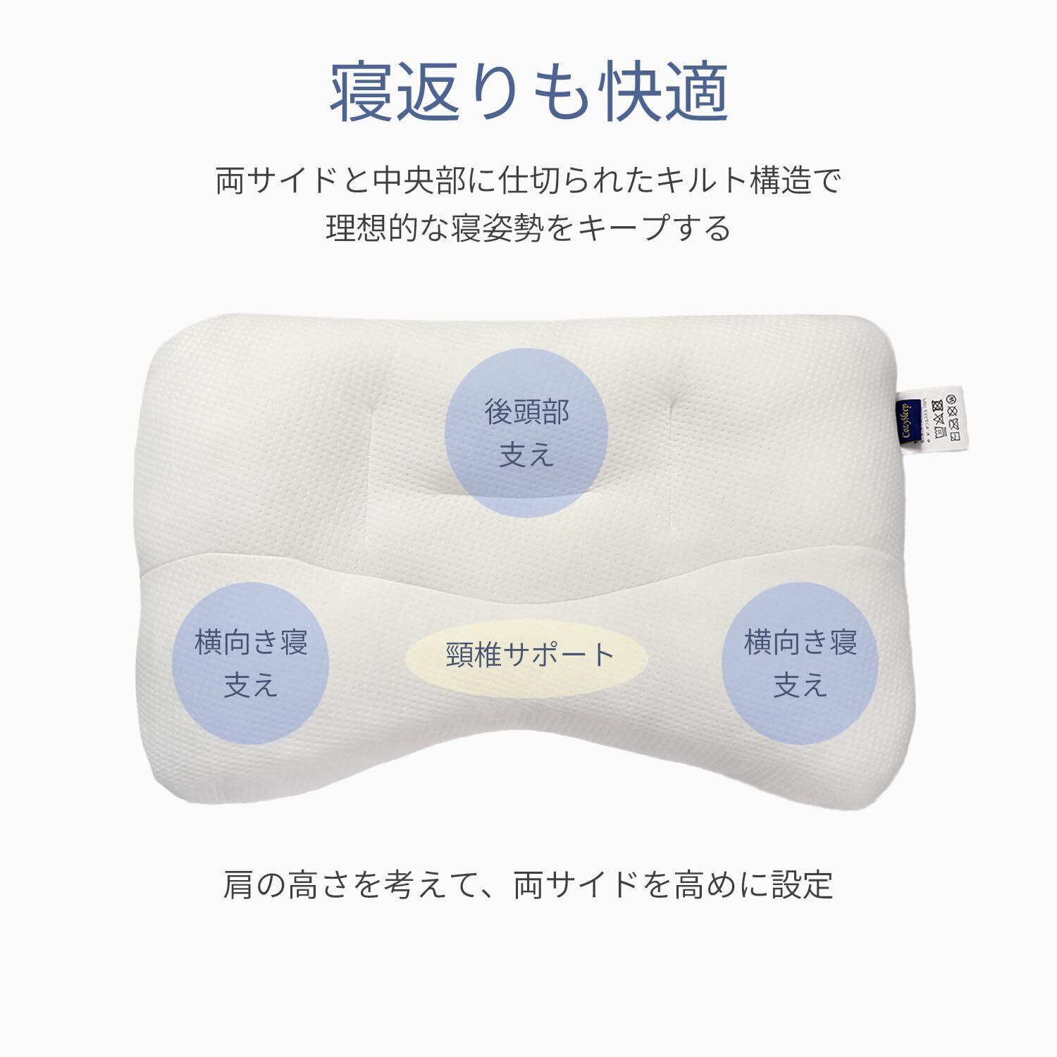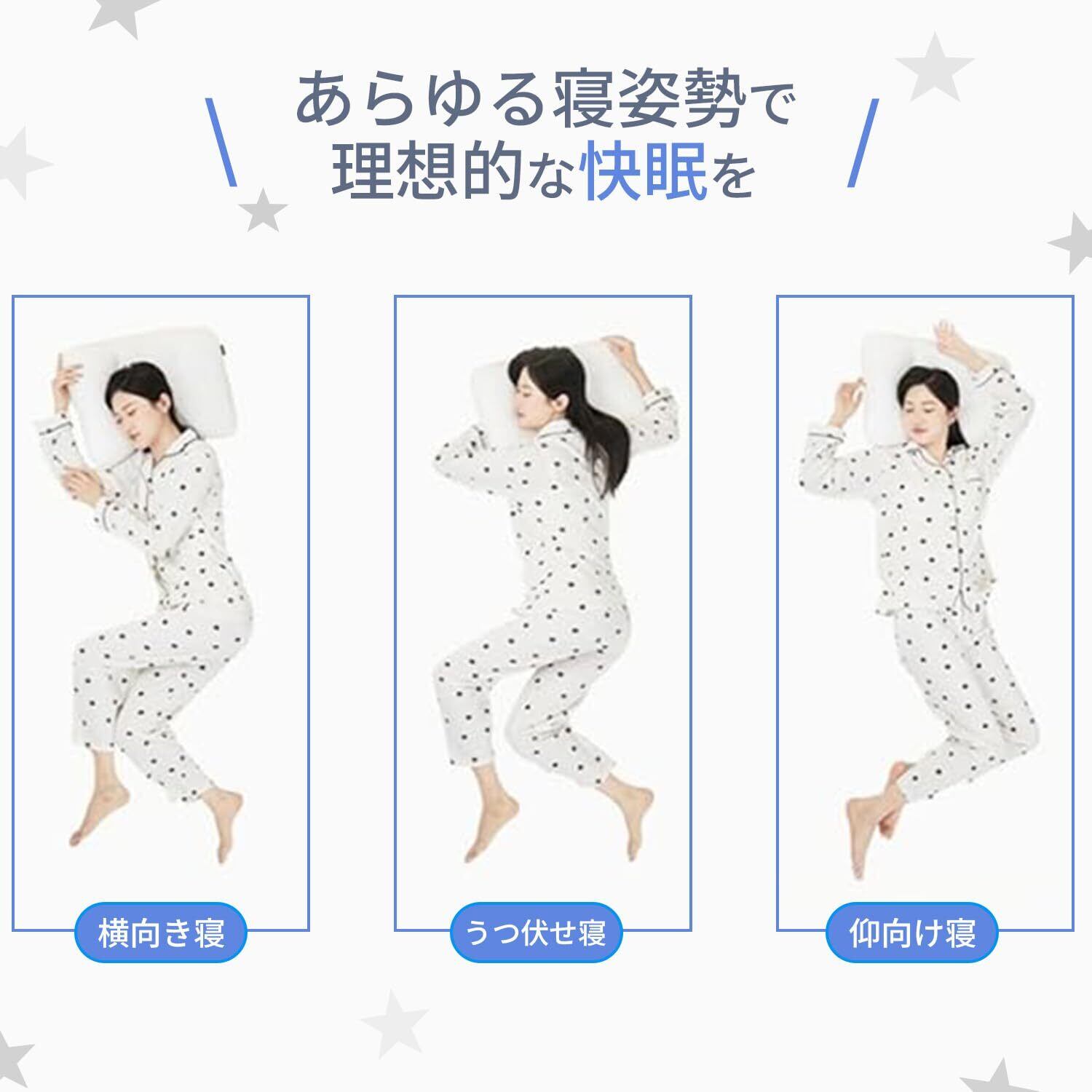 【どんな寝姿勢でもラク、頚椎・首・頭をやさしく支える 安眠枕 】人間工学に基づいた設計、しっかりと頭、首、頚椎、肩をやさしく支えています。 仰向け 、 横向き 、うつ伏せ どんな姿勢でも理想的な曲線を維持できるから寝心地がもっと安定できます。