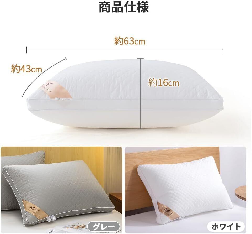 【人気商品】AIFY 枕 ホテル仕様 低中タイプ 高さ 16cm 仰向け うつぶせ寝 柔らかい枕 寝心地良い枕 安眠 まくら 丸洗い可能 立体構造 チェック柄 43×63cm ホワイト