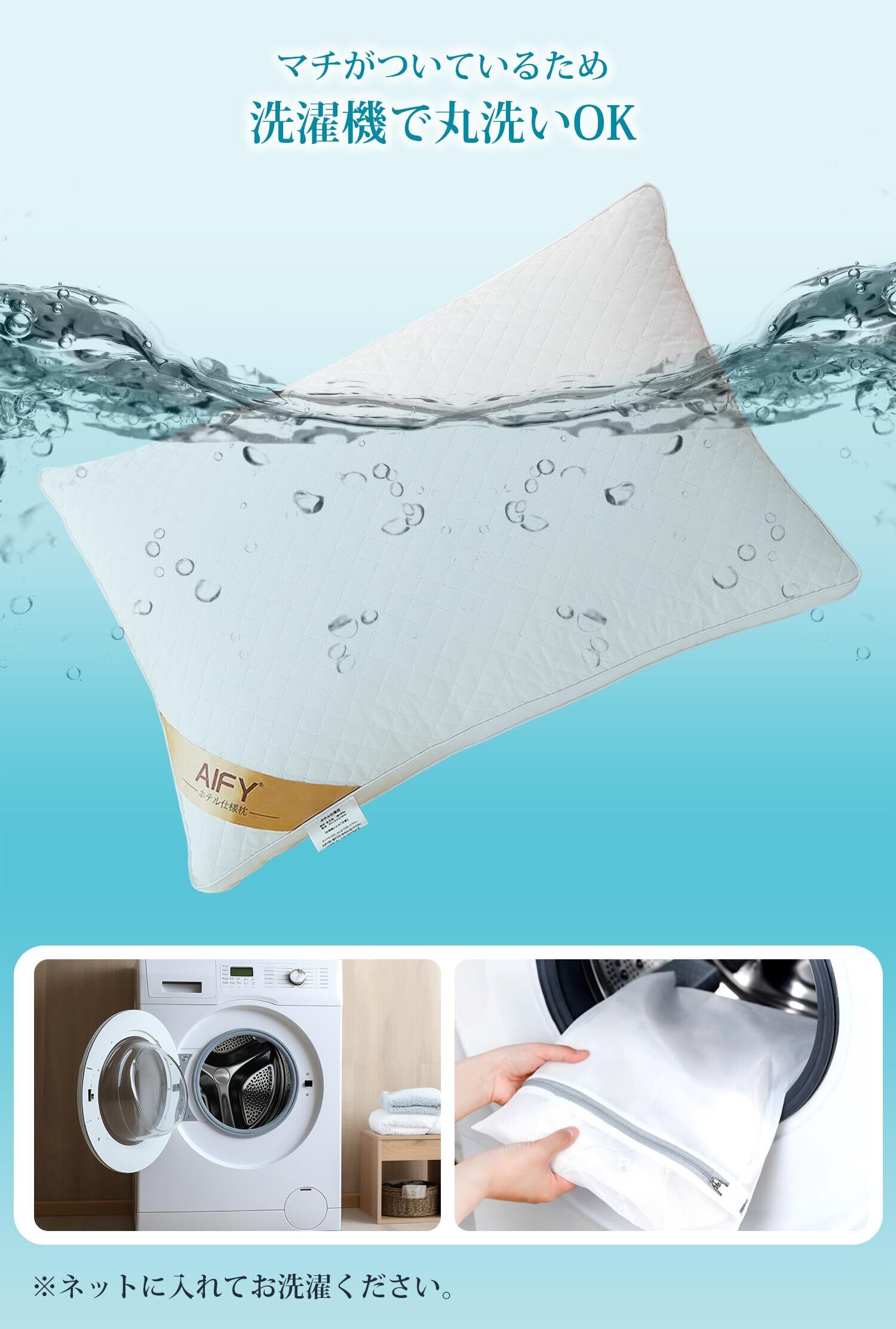 【丸洗いOK】汚れやにおいがありましたら洗濯ネットに入れ簡単に丸洗い、ご自宅で洗濯が可能なので、アレルギーの原因となるチリ、ダニ、ホコリを除去でき、夏でも汗と臭いを洗い流せます。綺麗で清潔感があります。乾燥機やドライヤーの使用は品質低下につながるので、タンブル乾燥禁止(タンブラー乾燥禁止・乾燥機での乾燥禁止)、自然乾燥が基本です。洗濯後水気をある程度切ったら、陰干しを行います。推奨されるのは陰干しですが、どうしても天日干しを行いたい場合は、1時間程度にします。 天日干しを長時間続けると太陽熱により、品質低下が起こる可能性があります。1時間の天日干しで乾かない場合は、かげぼしと併用しましょう。