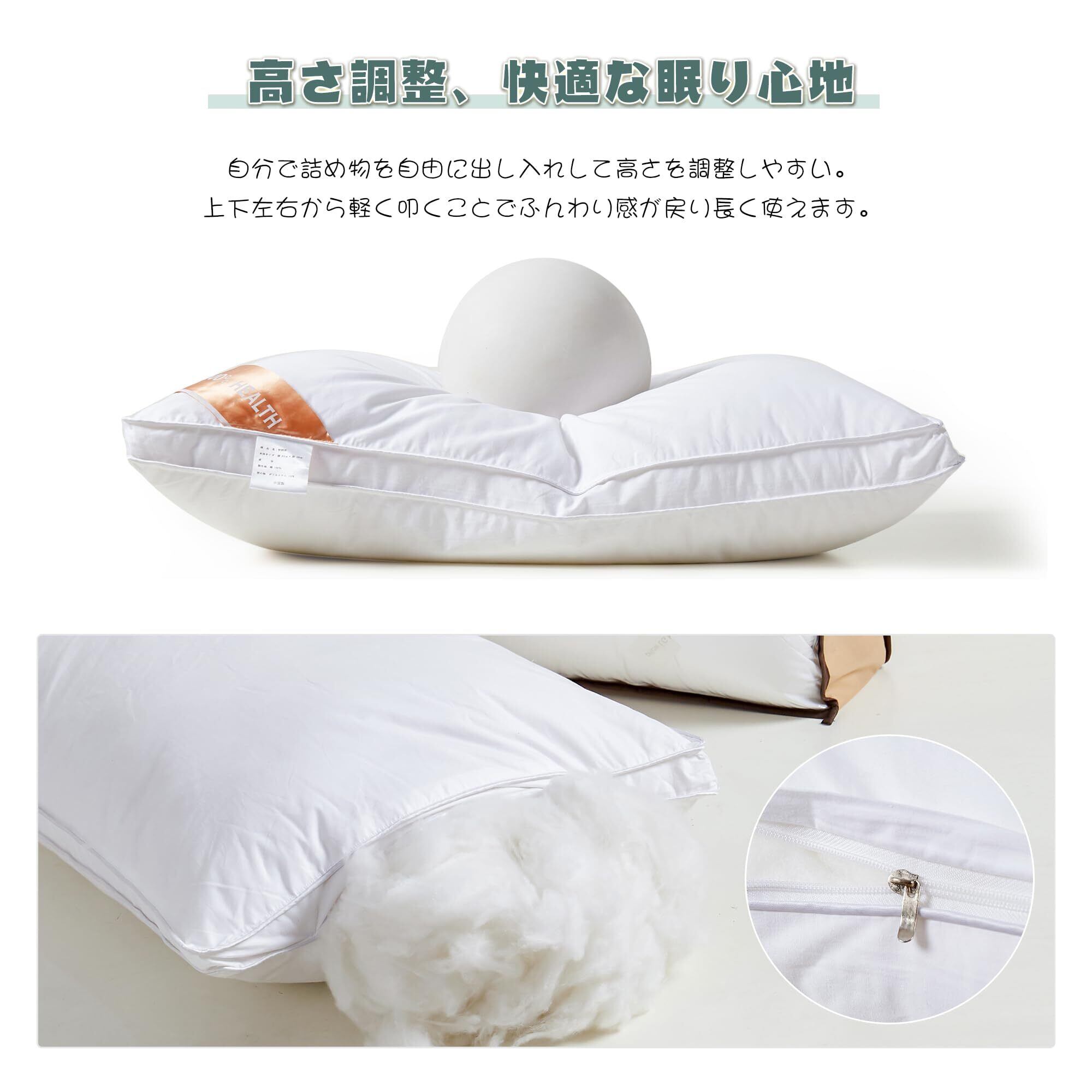 【高さ調整可能】低めの枕がお好みの方にも対応!ファスナーを開けて内部の詰め物を調整することで、お好みの高さにカスタマイズ可能。また、「揉む」「押す」「振る」「整える」の4つの簡単な方法で、最適な高さに調整できます。