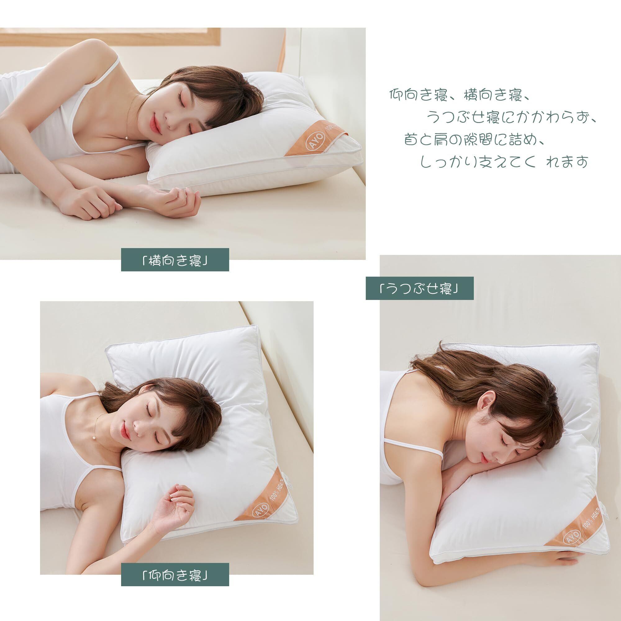 【ホテル級の快適さをご自宅で】AYOの高反発枕は、最高級ホテルで使用される枕と同じ品質を実現します。ふんわりとした柔らかさと適度な弾力性を兼ね備え、頭と首をしっかりサポート。まるで雲の上にいるような寝心地で、快眠を約束します。