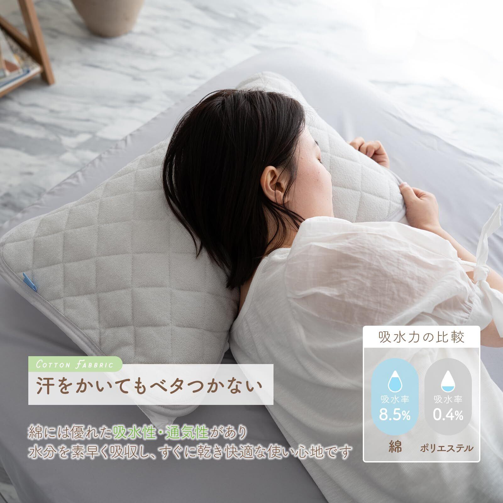 【快適綿パイル】お肌に触れる部分は綿100%のタオル地。汗をよく吸い取り、季節を問わず長い期間お使いいただけます。