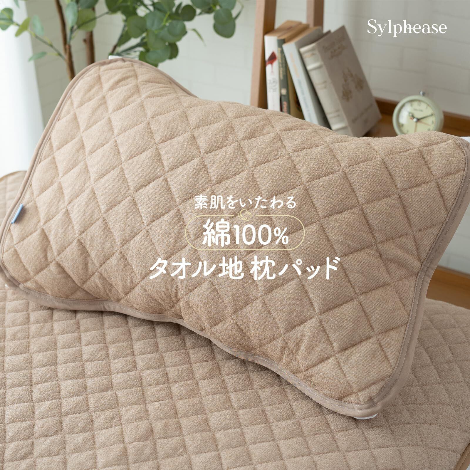 【数量限定】シルフィーズ 枕パッド 綿 2枚セット タオル地 ベージュ 43×63cm オールシーズン おしゃれ かわいい 北欧 吸水 パイル ゴム