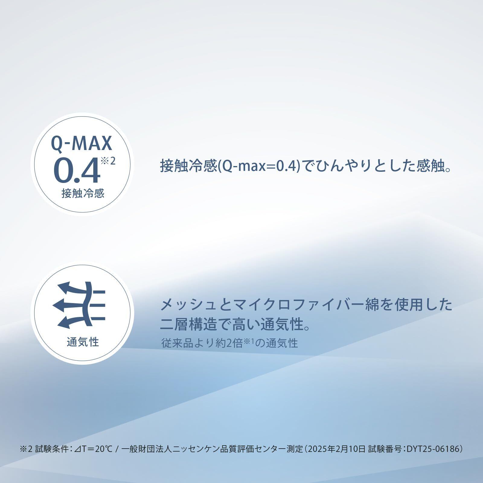 従来品より約2.0倍の通気性。接触冷感(Q-max=0.4)でひんやりとした感触。