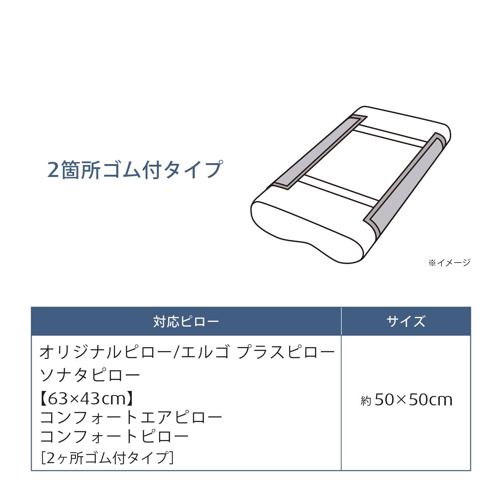サイズ:約50x50cm | 装着タイプ:2箇所ゴム付 ※テンピュール(R) オンブラシオピロー、63x43cmより大きいピローは対象外