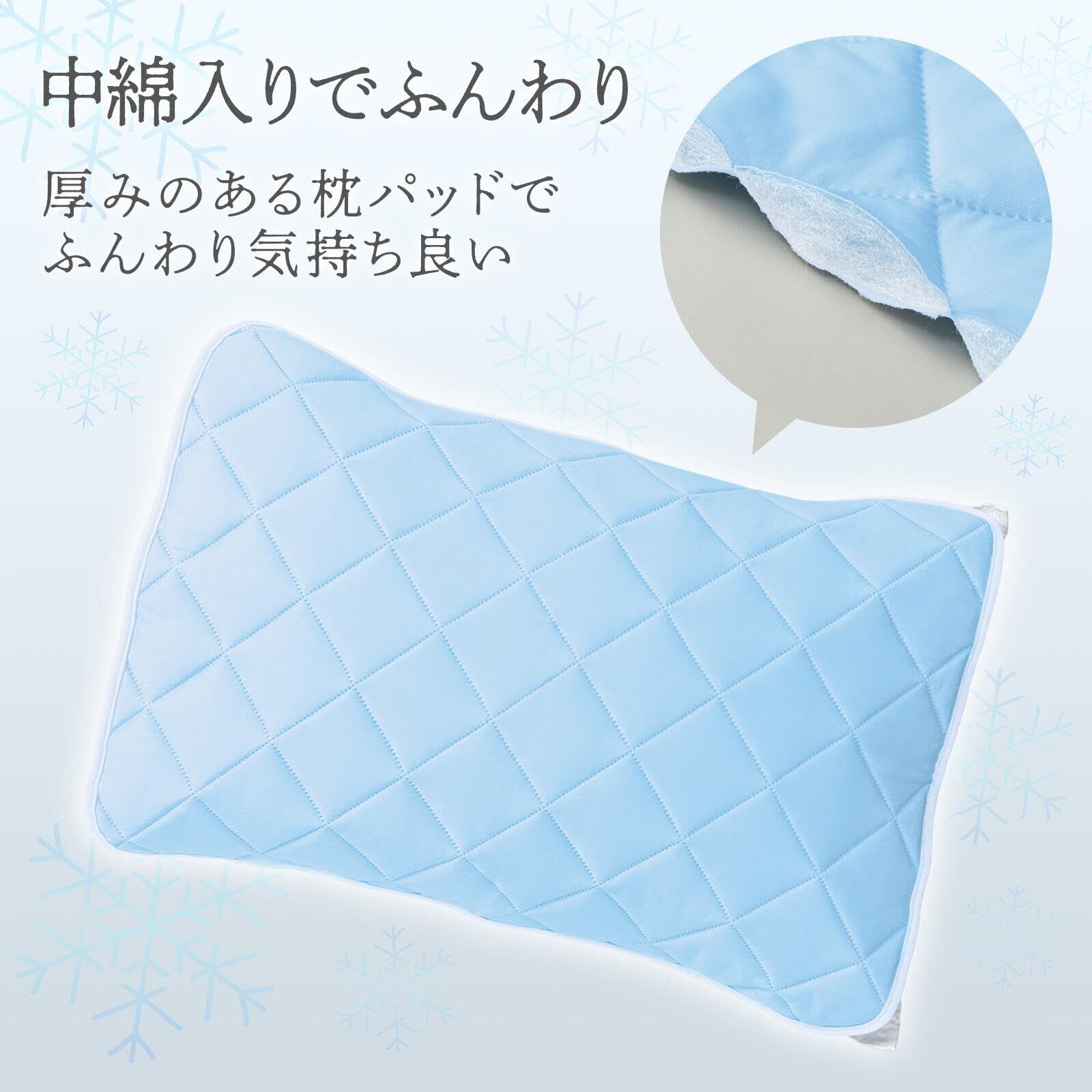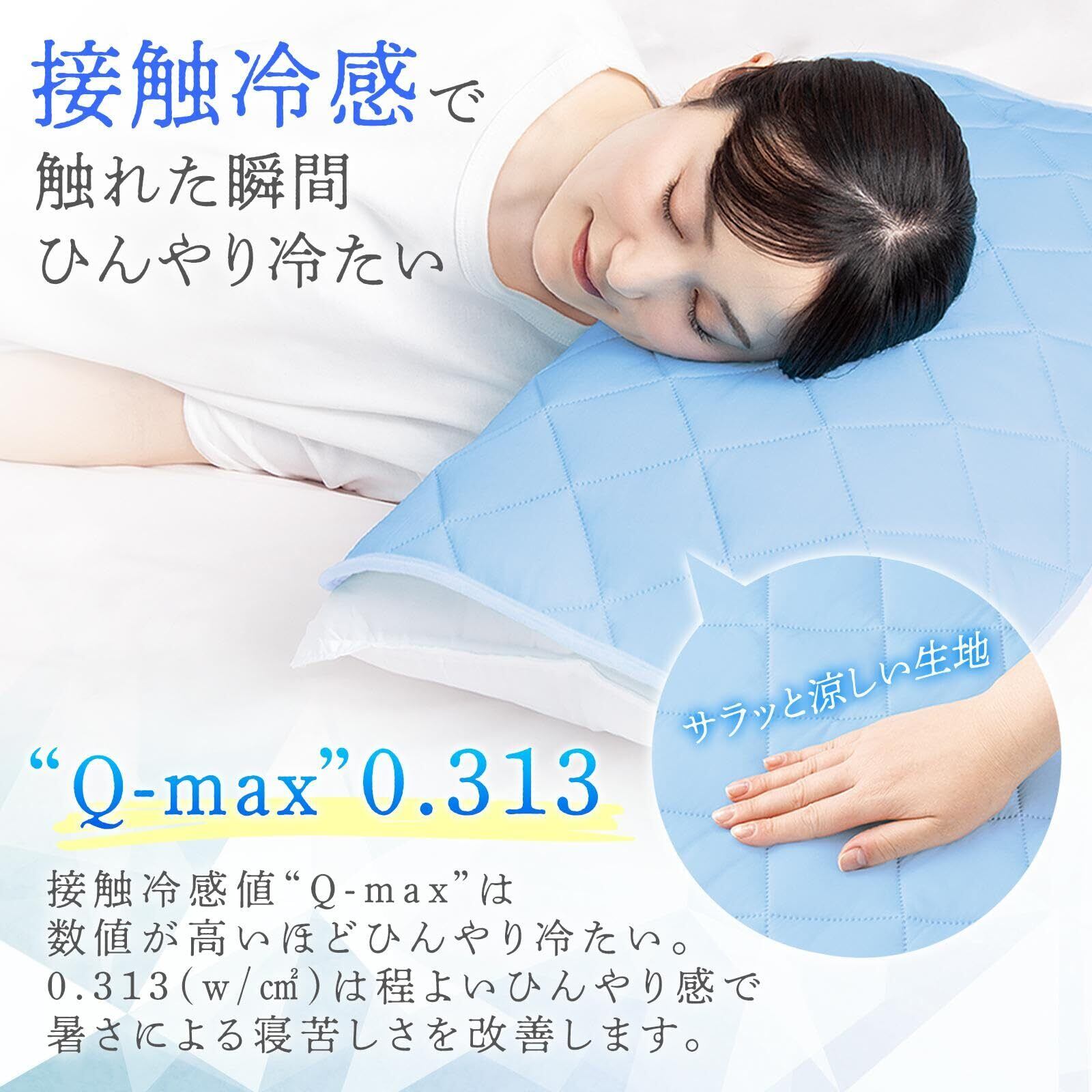 【特別価格】コモライフ ひんやり冷感 枕パッド Q-max0.313 接触冷感 紐 まくら カバー 水色 中綿入り 夏 暑さ対策 43×63cm