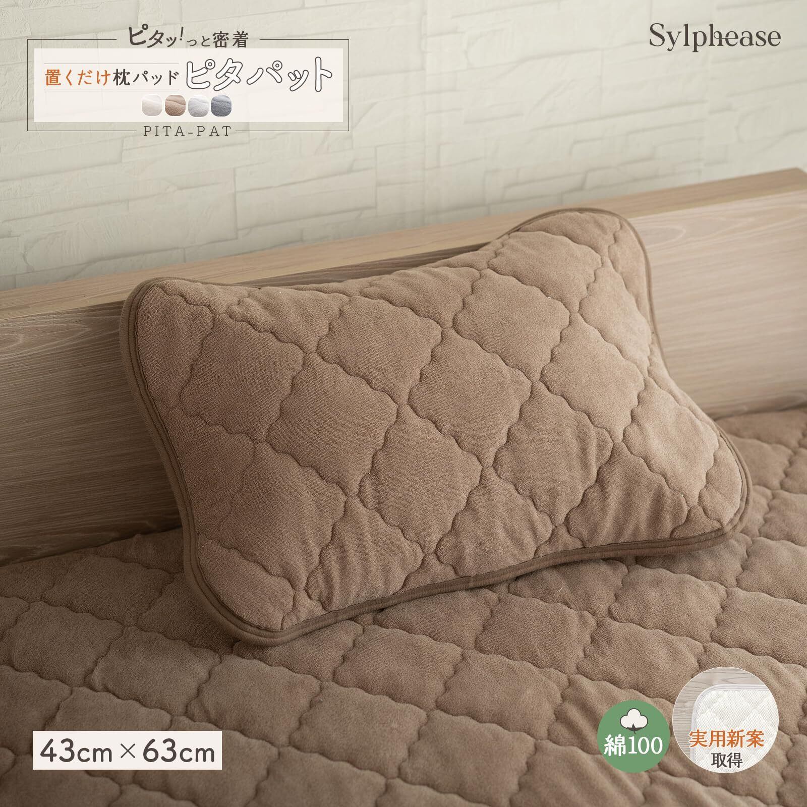 シルフィーズ 枕パッド 綿100% 43×63cmタオル地 滑り止め ゴムなし ずれない ピタパット 枕カバー 消臭 オールシーズン 防カビ (ブラウン)