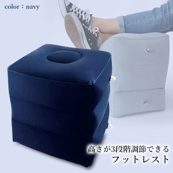 【在庫限り】フットレスト 飛行機 ネイビー 空気 三段階 エアータイプ オットマン クッション 足置き 足乗せ 足枕 リラックス 快適