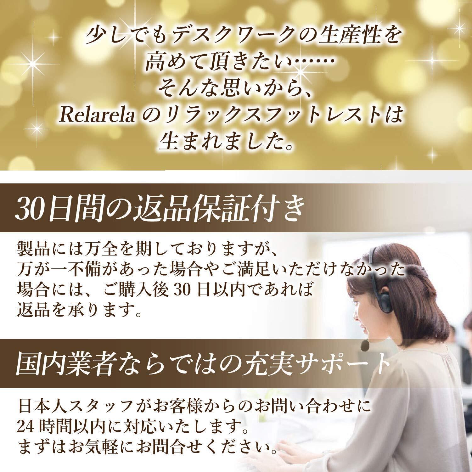 とにかく”大きさ”にもこだわりました。 従来のフットレストでは「小さくてなにかものたりない。」「足が大きいのでサイズ感が合わない」などの意見がありましたので、ReLarelaのフットレストではビックサイズとなっており既存のフットレストよりも一回り大きいです。