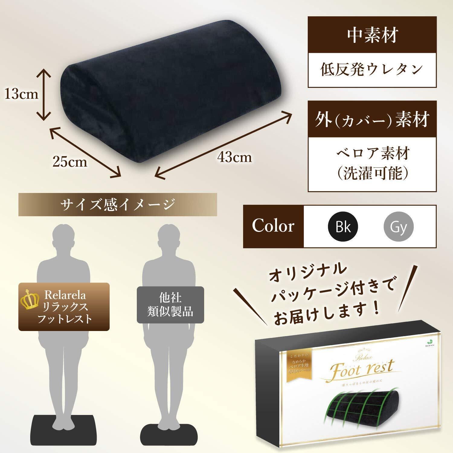 フットレスト ReLarela 足枕 (幅43cm)【硬めが好きな人専用】 低反発 (幅43cm) クッション 足置き デスク下 大きいサイズ 足が沈み込みすぎない硬めタイプ (グレー)