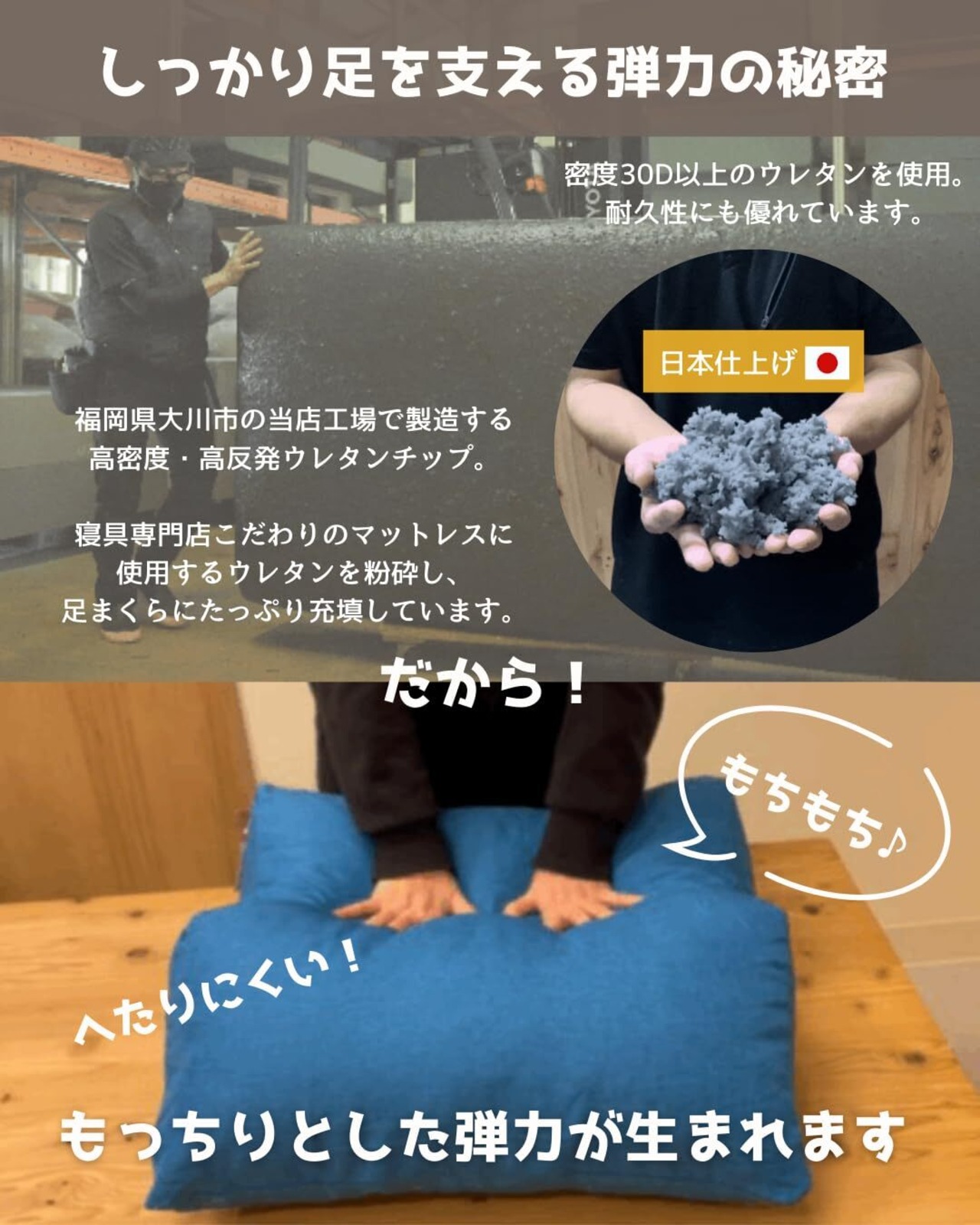 BIG足枕 チャコール【眠りの専門店マイまくら】ウレタンチップ 高反発 弾力 就寝用 足置き ふくらはぎ洗えるカバー フットレスト 高め 日本仕上げ 就寝用 フットピロー むくみ 膝枕 (チャコール)