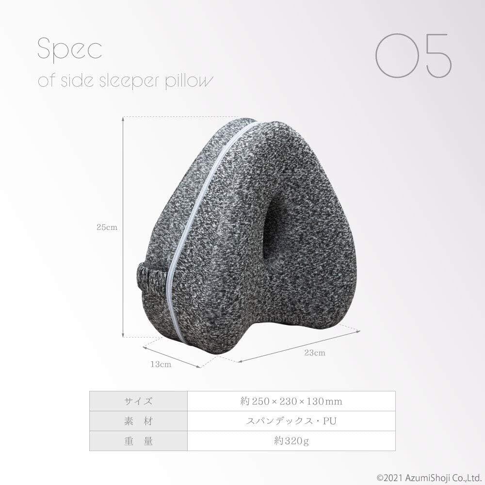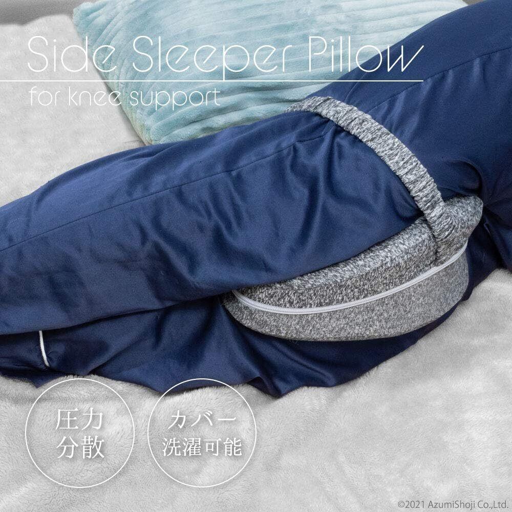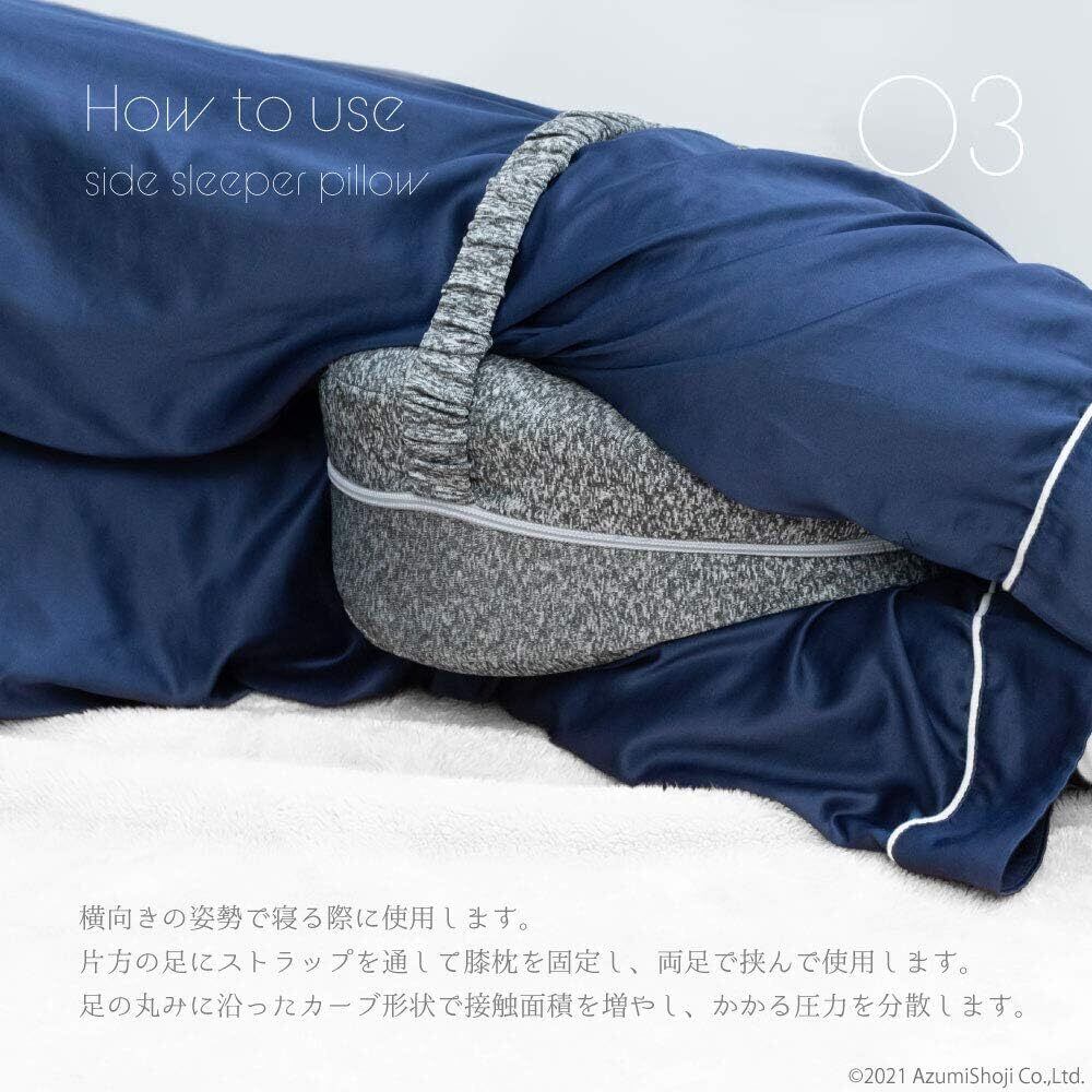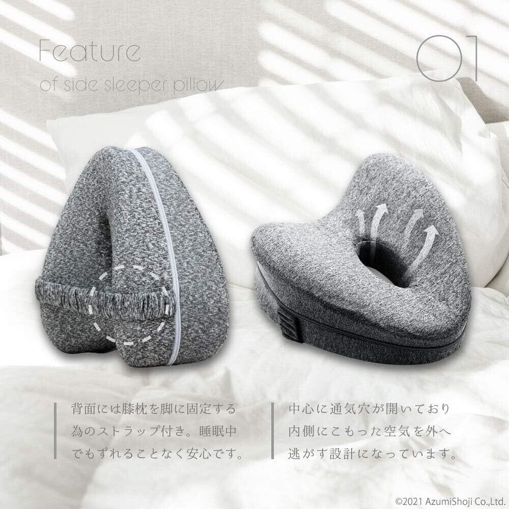 横向き膝枕 Side Sleeper Pillow 圧力分散 カバー洗濯可能 着脱可能 ストラップ付き 通気性 足に沿ったカーブ形状 グレー 寝具 補助枕 便利グッズ