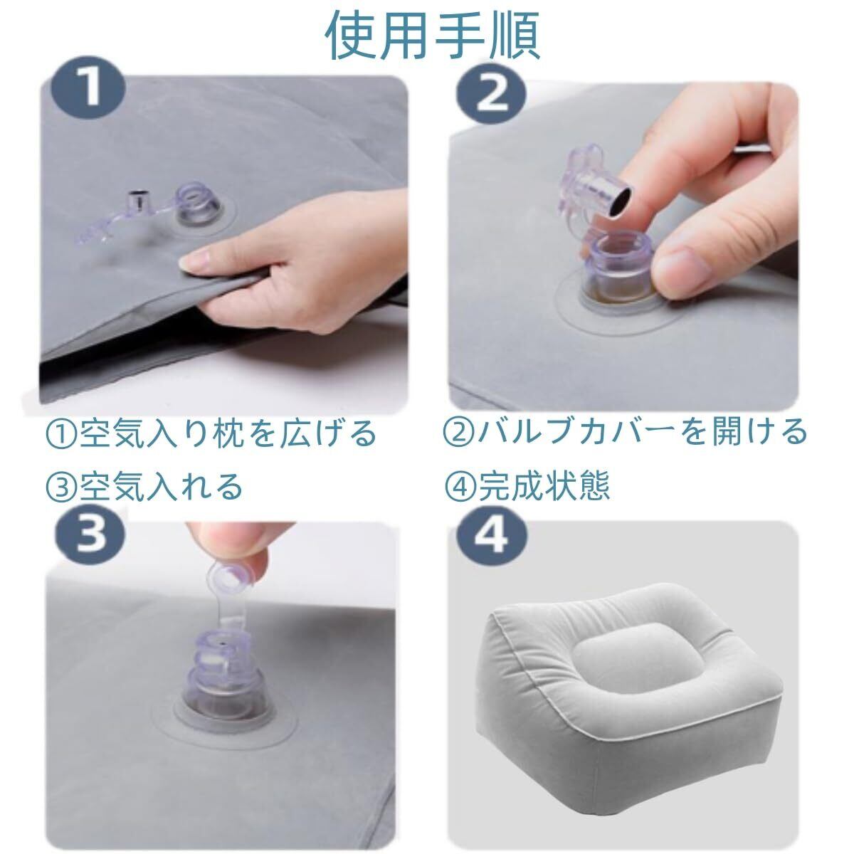 YFFSFDC 足枕 足置き フットレストエアクッション 足乗せ車用 飛行機用 旅行用ご自宅 オフィス エコノミークラス座席をフラット足枕 リラックス 簡単膨らませ携帯便利(グレー)