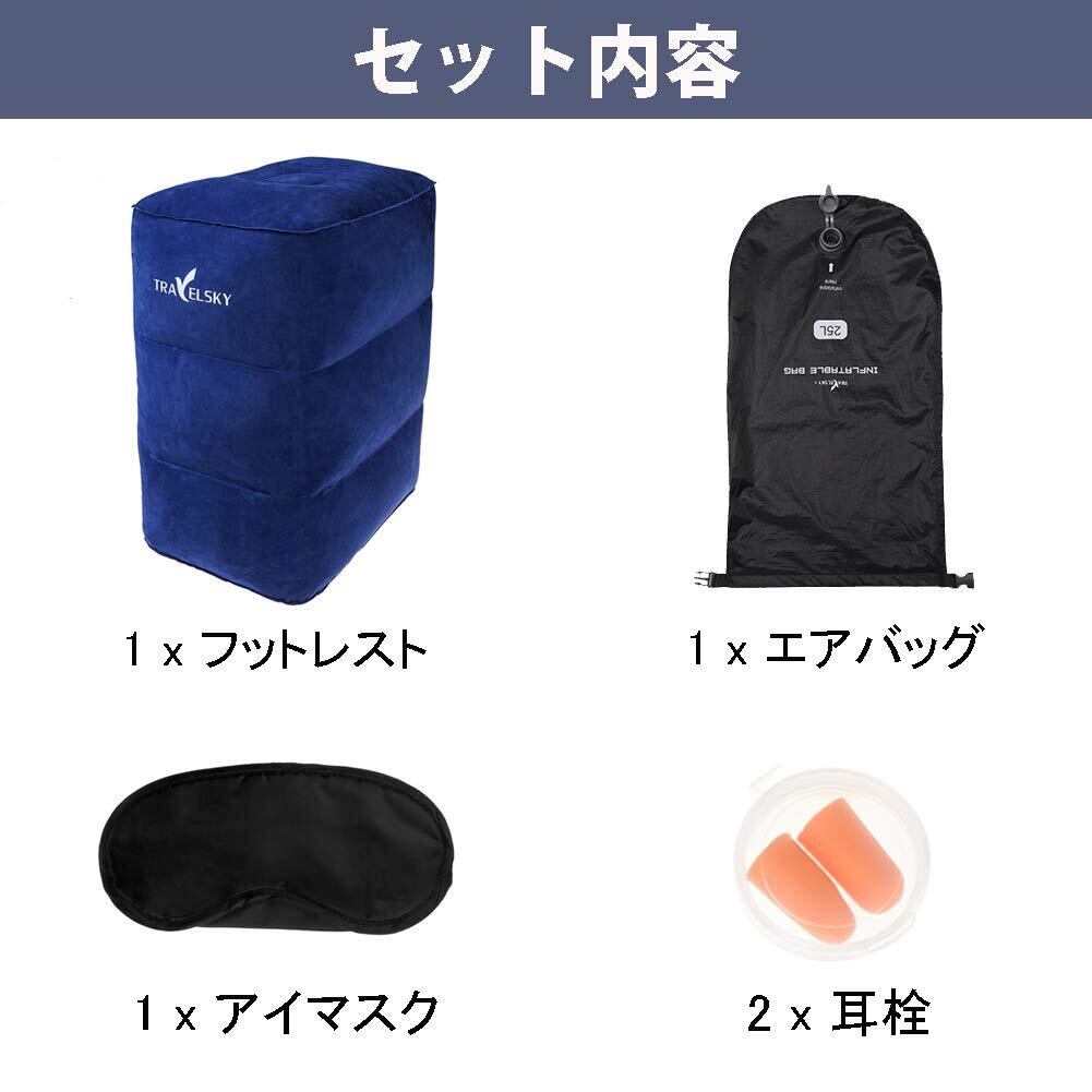 ◆便利・コンパクト:折りたたんで超薄超便利コンパクトに持ち運べ、使わないときは省スペ-スな優れものです。非常に適していますオフィスのデスク下やリビング等の室内から、飛行機、車、夜行バス、新幹線など。【セット内容】フットレスト×1、エアパックx1、収納袋×1、アイマスク×1、耳栓×2 。