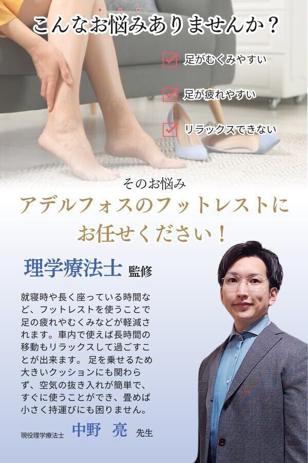 adelphos 足枕 就寝用 むくみ 腰枕 クッション フットレスト エアー 足置き 睡眠 ストレッチ 収納袋付 FOOT3 (1個)
