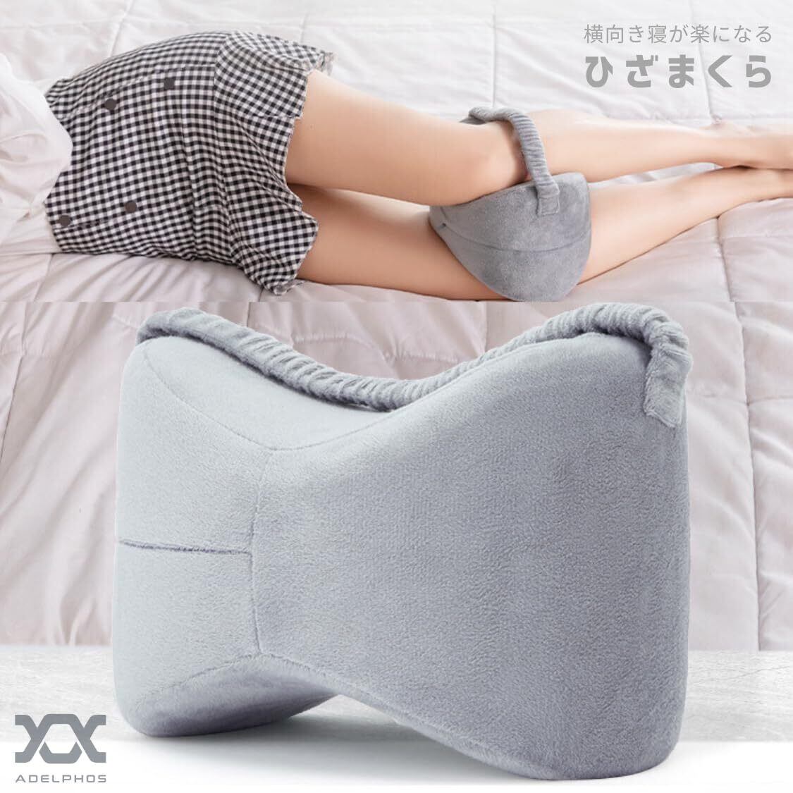 【数量限定】adelphos 足枕 就寝用 膝枕 横向き寝 足に挟む 低反発 洗えるカバー ベロア生地 太もも ふくらはぎ 足首 クッション HM1 (1個)