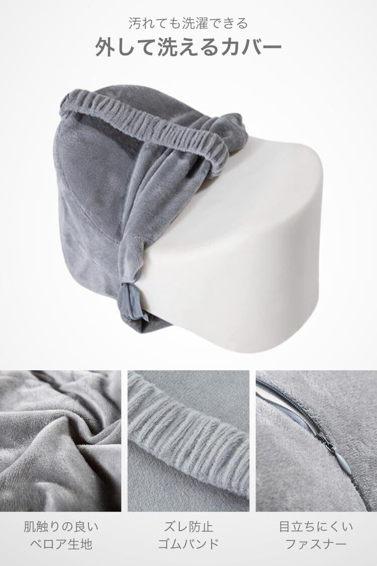 adelphos 足枕 就寝用 膝枕 横向き寝 足に挟む 低反発 洗えるカバー ベロア生地 太もも ふくらはぎ 足首 クッション HM1 (1個)
