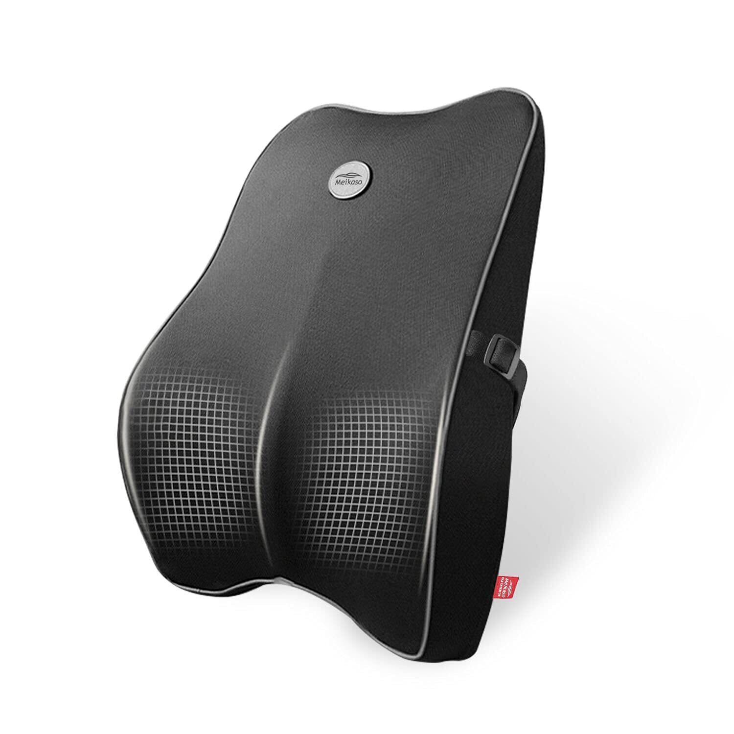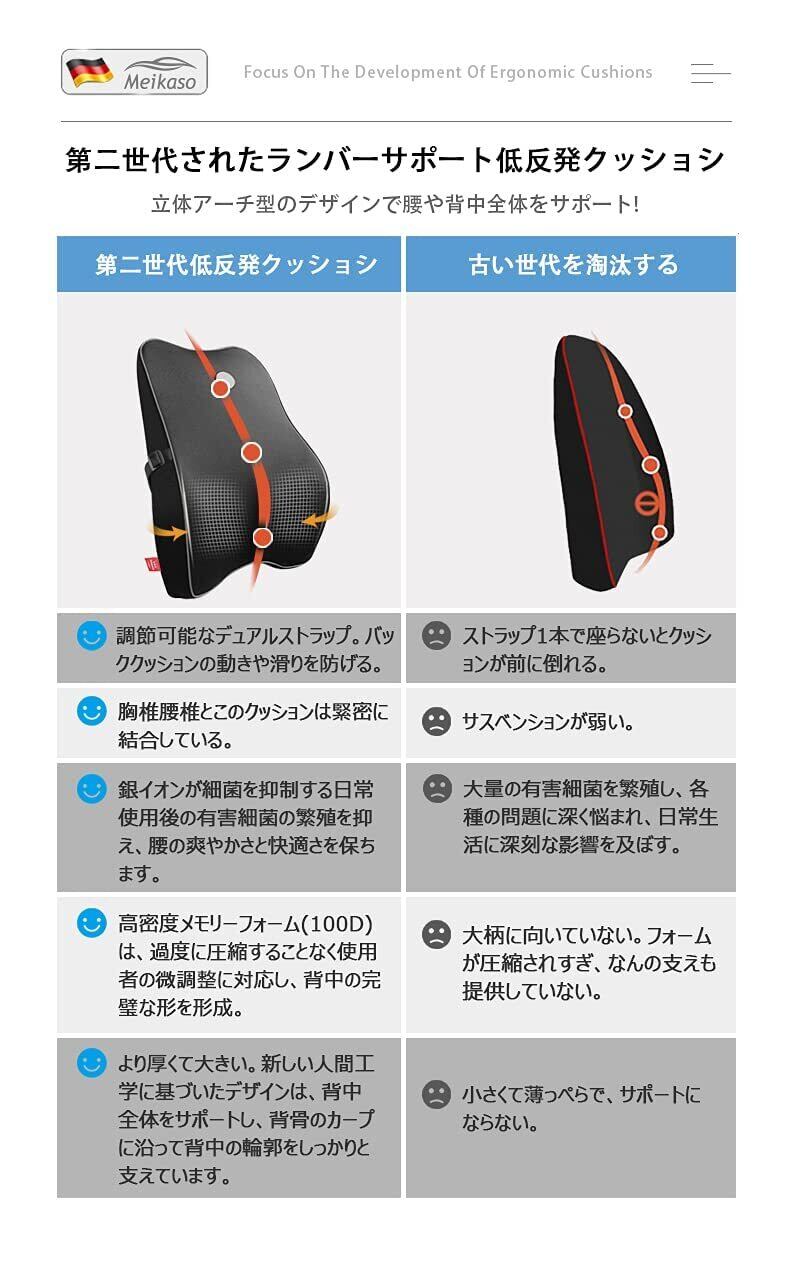【Tarzan雑誌!紹介】Meikaso 腰クッション 低反発 ランバーサポート 人間工学の意匠オフィス 椅子 背もたれ 車用 腰枕 SGS認証/100D高密度クリア 取付バンド調節可能 洗える 着座 車/自宅/オフィス/プレゼント用 クッション母の日 父の日 敬老の日 (ブラック)