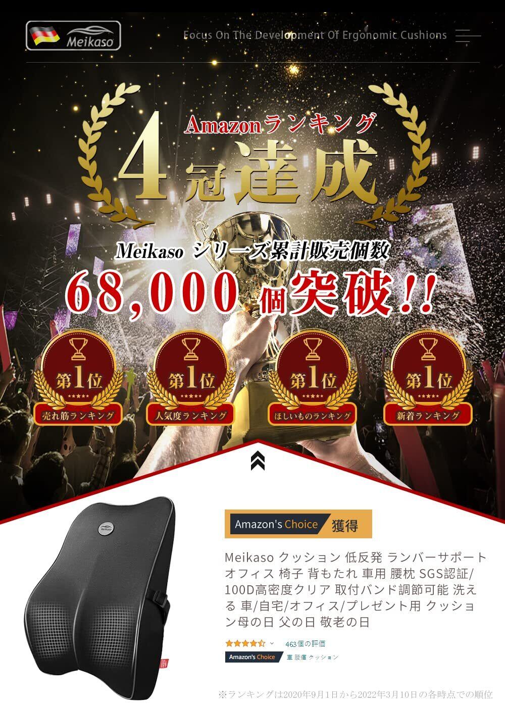 【数量限定】【Tarzan雑誌!紹介】Meikaso 腰クッション 低反発 ランバーサポート 人間工学の意匠オフィス 椅子 背もたれ 車用 腰枕 SGS認証/100D高密度クリア 取付バンド調節可能 洗える 着座 車/自宅/オフィス/プレゼント用 クッション母の日 父の日 敬老の日 (ブラック)