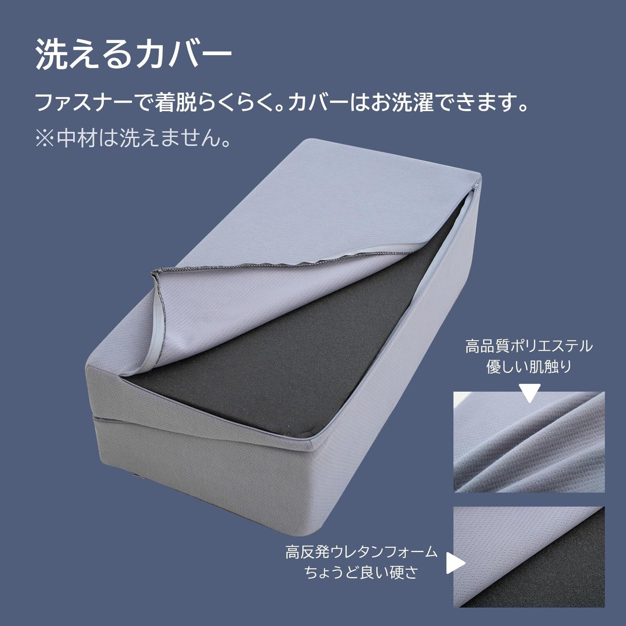 【カバー洗える&折り畳み式】ファスナーで着脱らくらく。カバーはお洗濯できるので、汗をかいたりにおいが気になったりした場合でも気軽に外して清潔にお使いいただけます。(中材は洗えません)折り畳み式便利性を生かし、持ち運び・収納簡単、さまざまな用途で活躍しています。